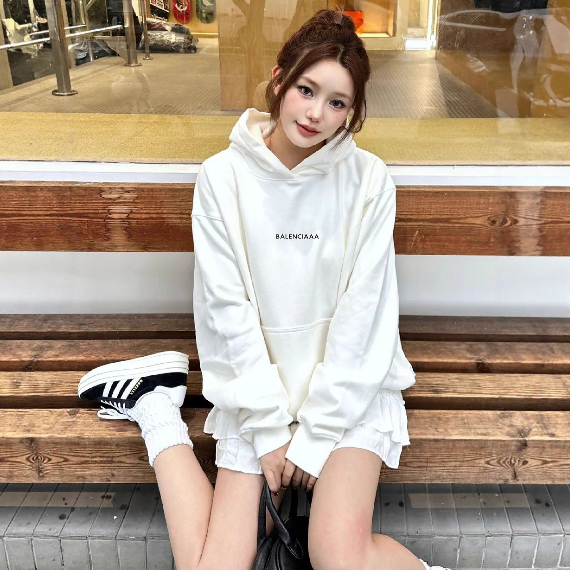 巴黎b家高版本经典logo刺绣卫衣帽衫内里毛圈宽松OS版型卫衣帽衫