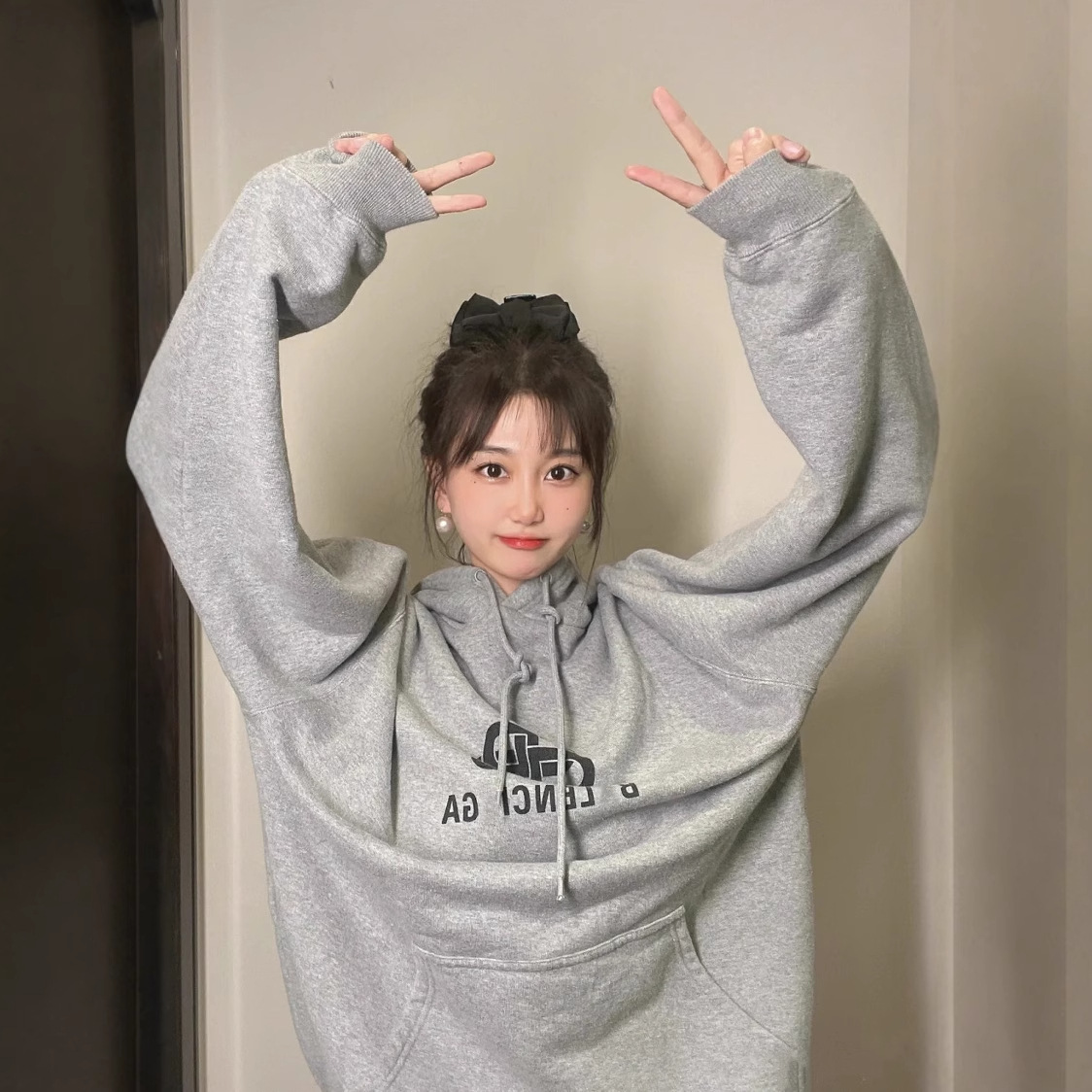 巴黎卫衣男女同款纯棉连帽上衣潮牌BL连帽衫硅胶小字母宽松女卫衣