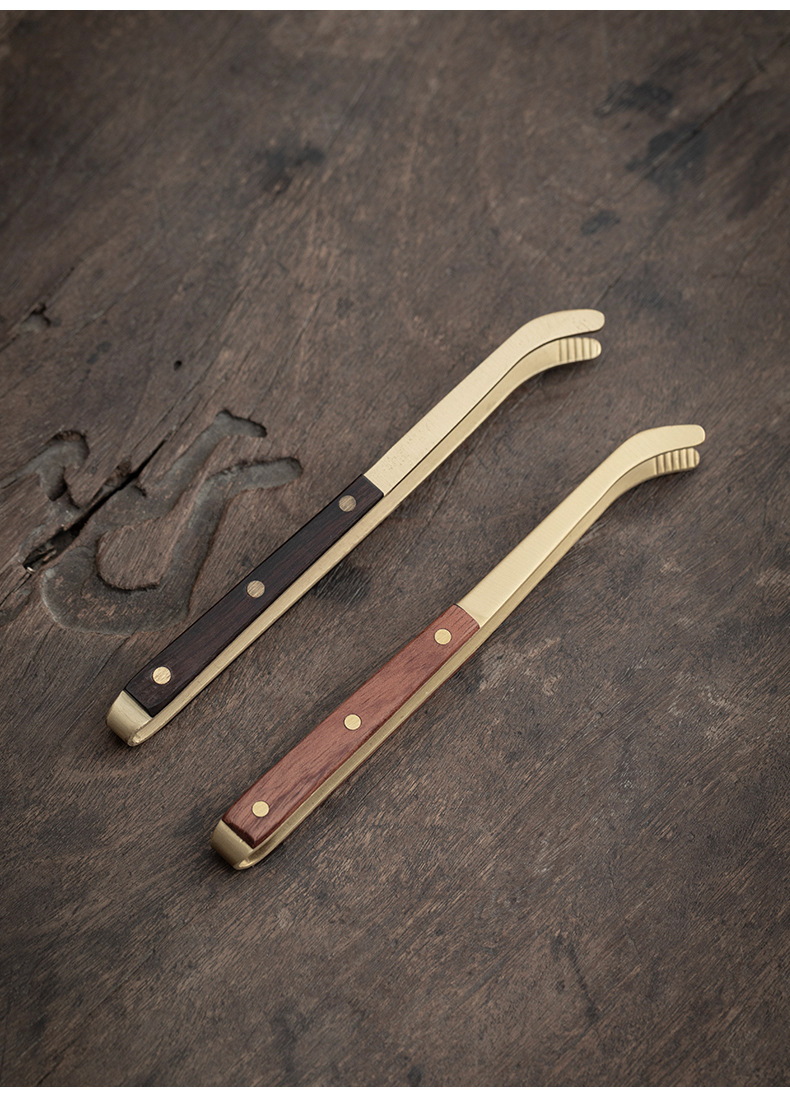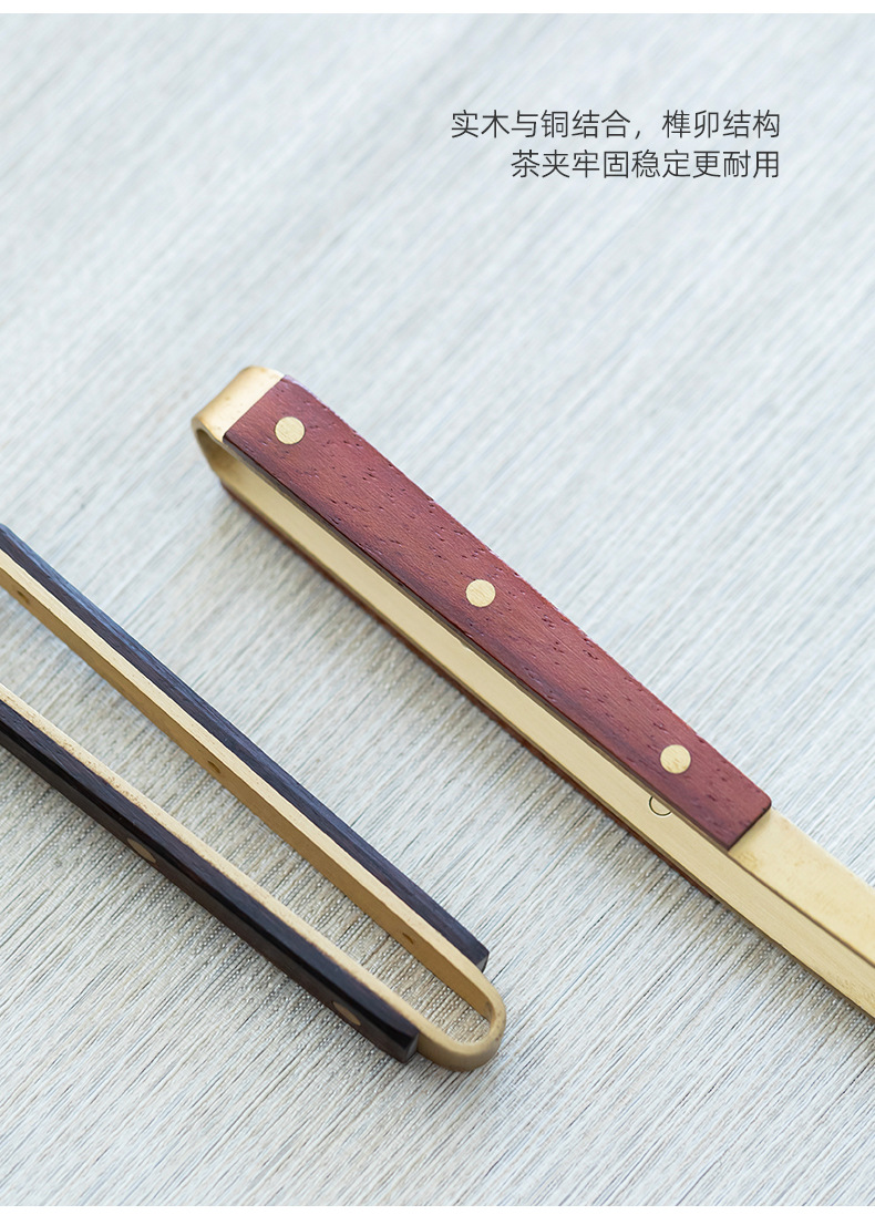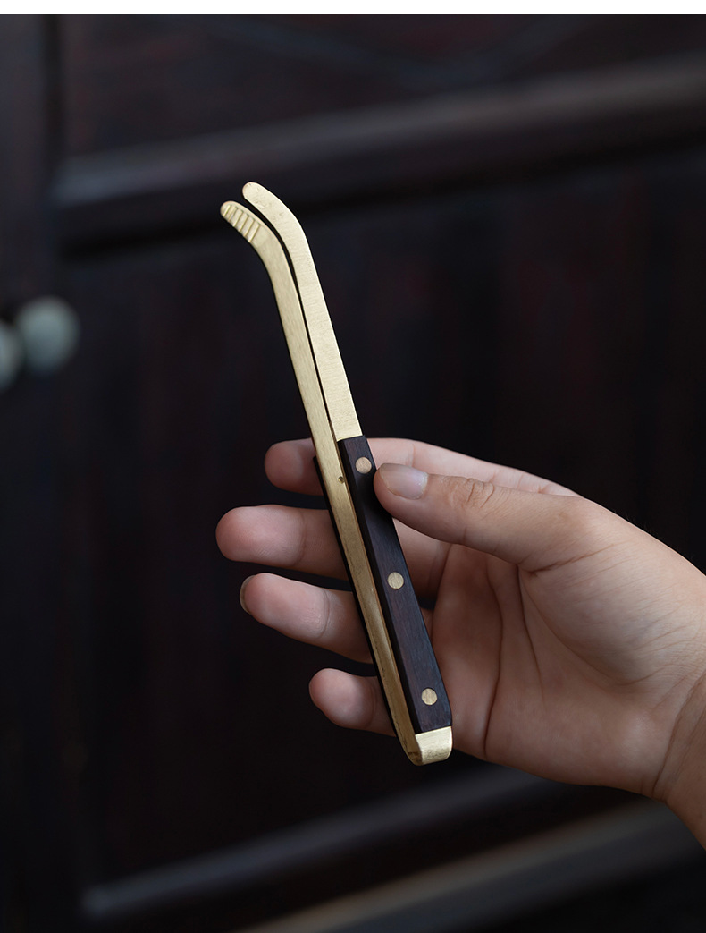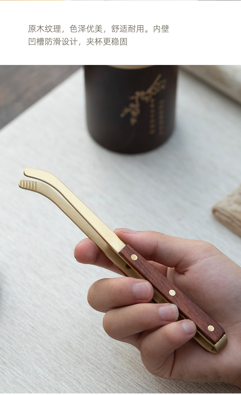 ティークリップカンフー茶道部品実木ピンセットパーマ防止カップクリップ真鍮黒檀木柄洗いカップクリップ