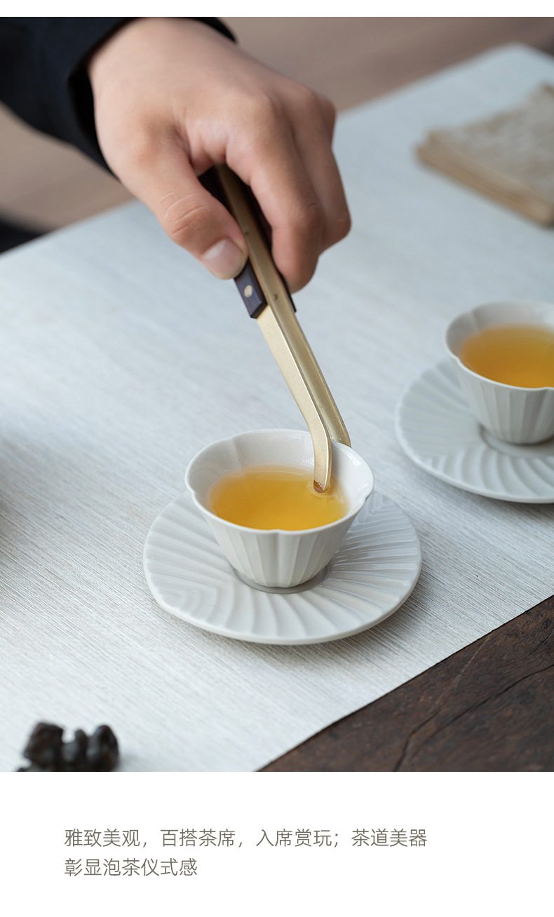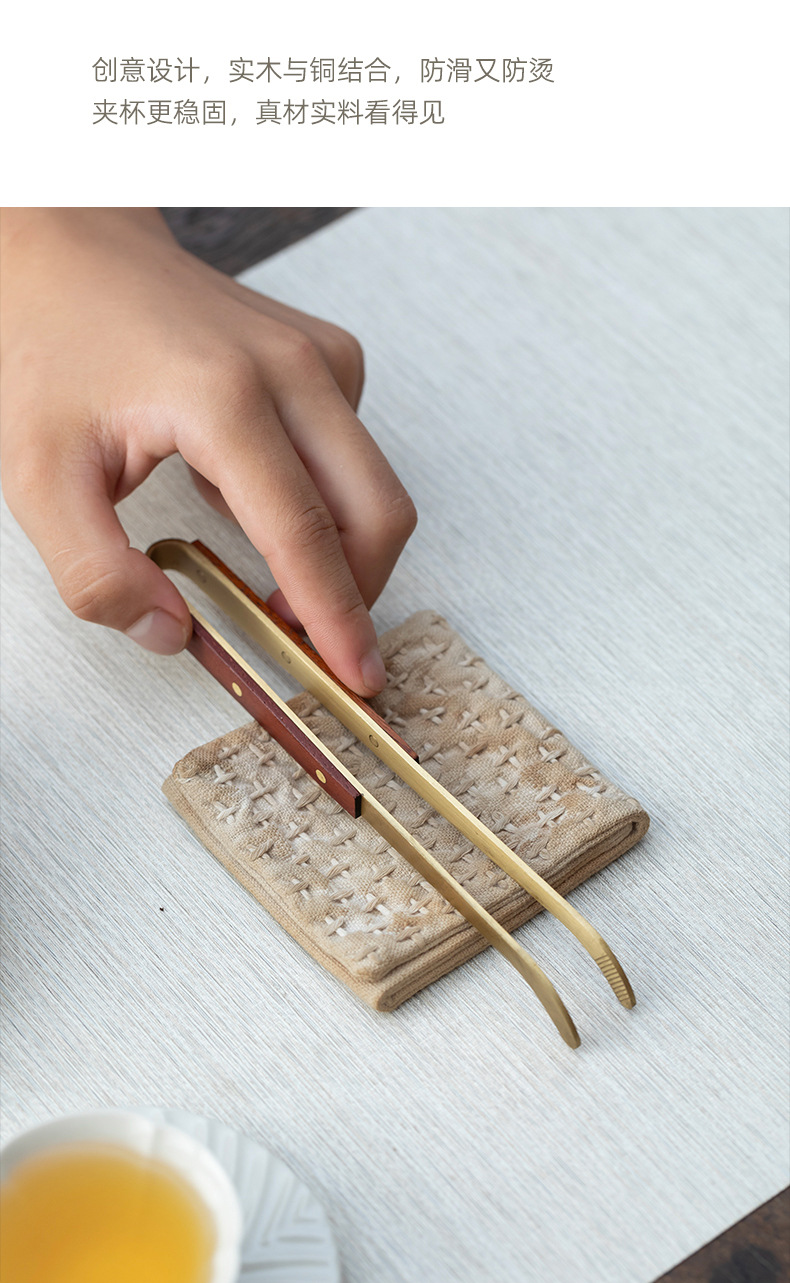 茶托クリップ、茶葉ピンセット、茶杯、功夫茶道具、茶道アクセサリー、茶道道具、木製、真鍮製、銅製茶道道具