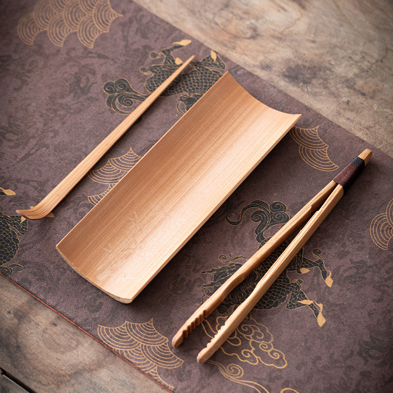 炭化茶則三点セット純手作り天然竹製無漆茶則茶匙茶挟み茶荷茶撥茶具部品
