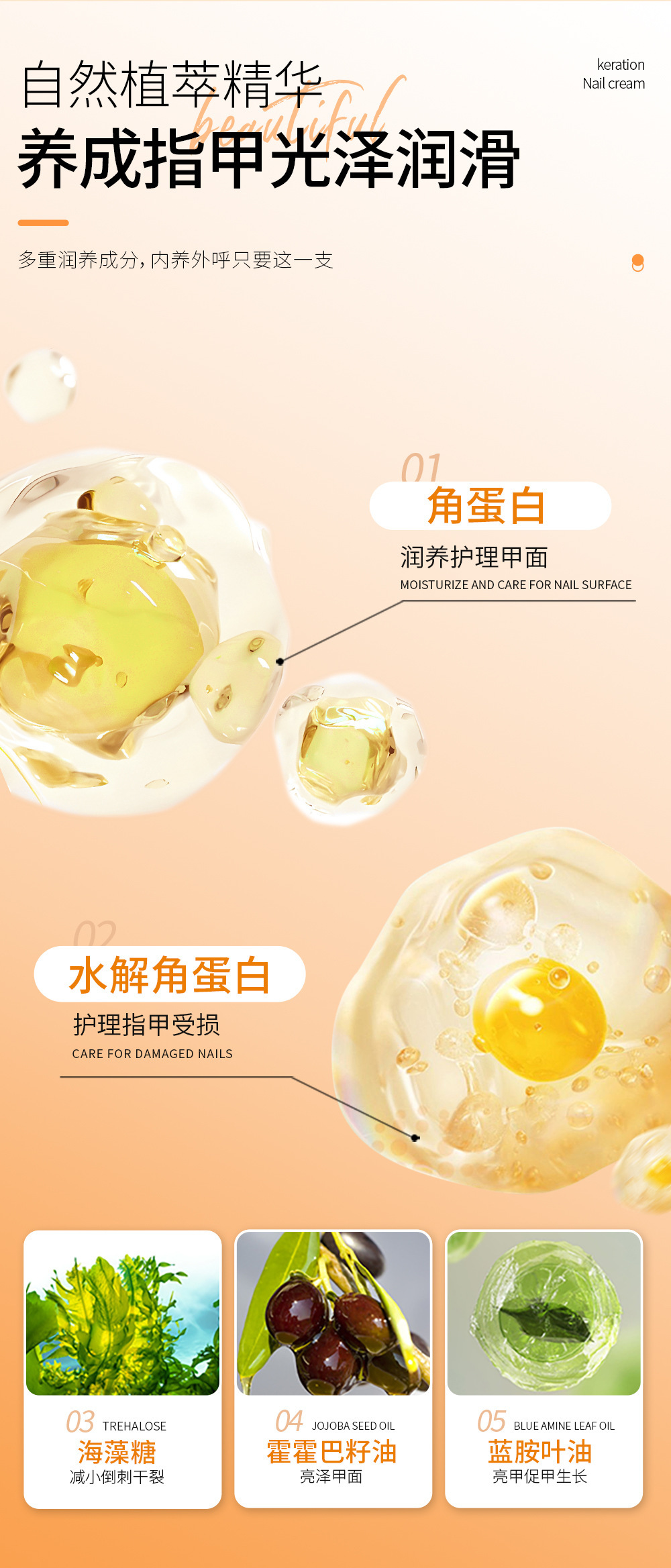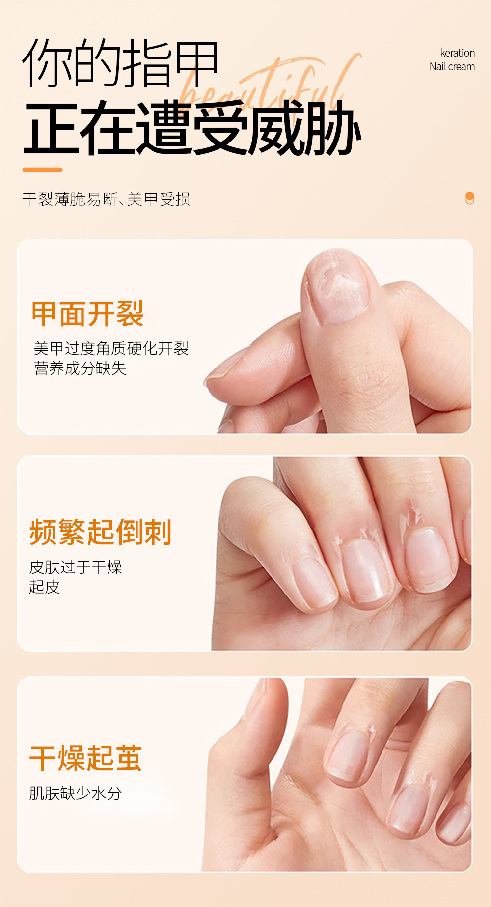 ケラチンネイルクリームは爪を修復し、栄養を与え、強化し、明るく光沢を与え、爪の表面を改善し、手の保湿ケア T0