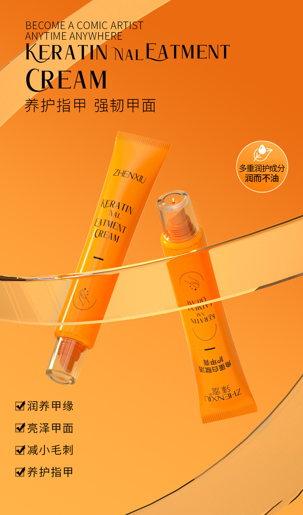 跨境工厂琪瑟角蛋白滋润护甲膏修复受损甲面护甲油男女指甲油养甲