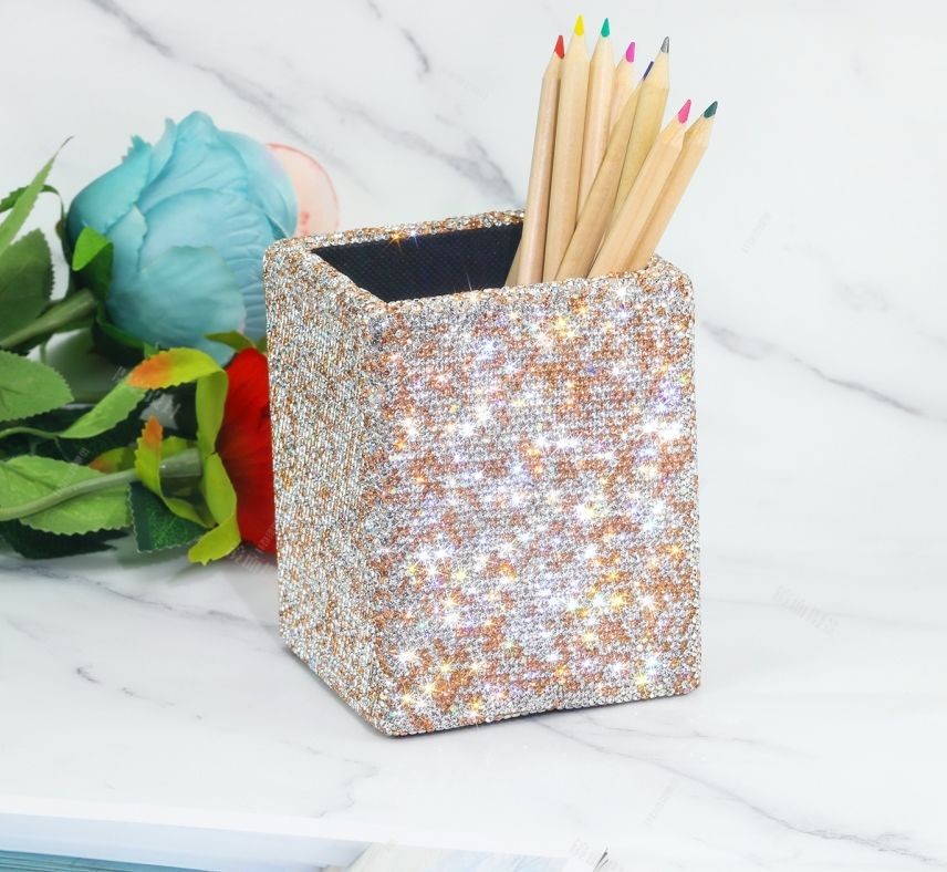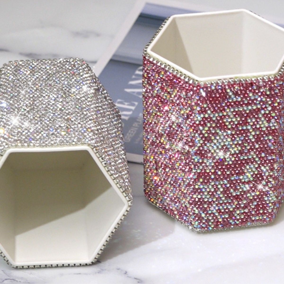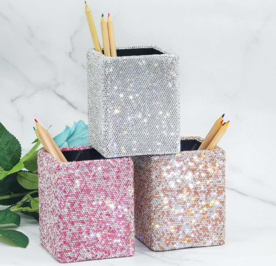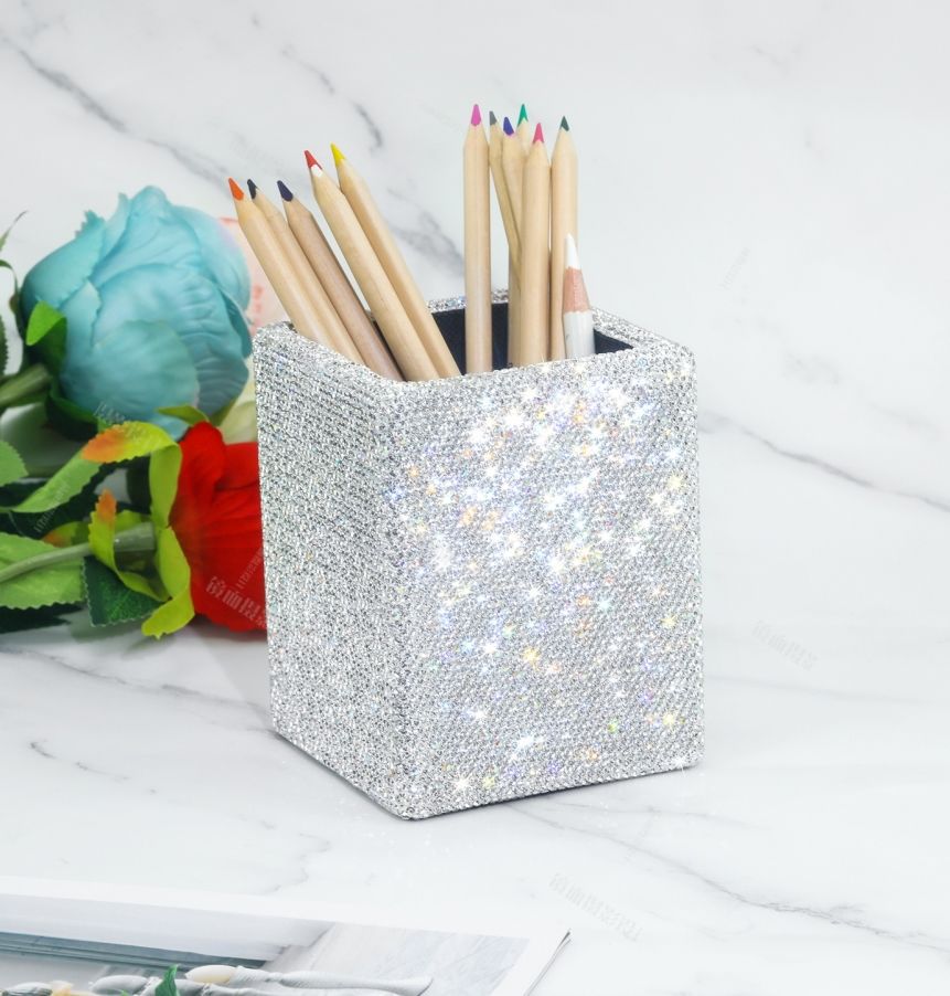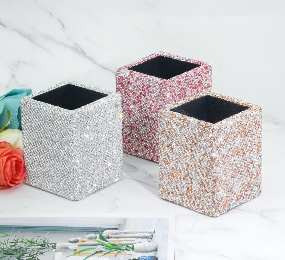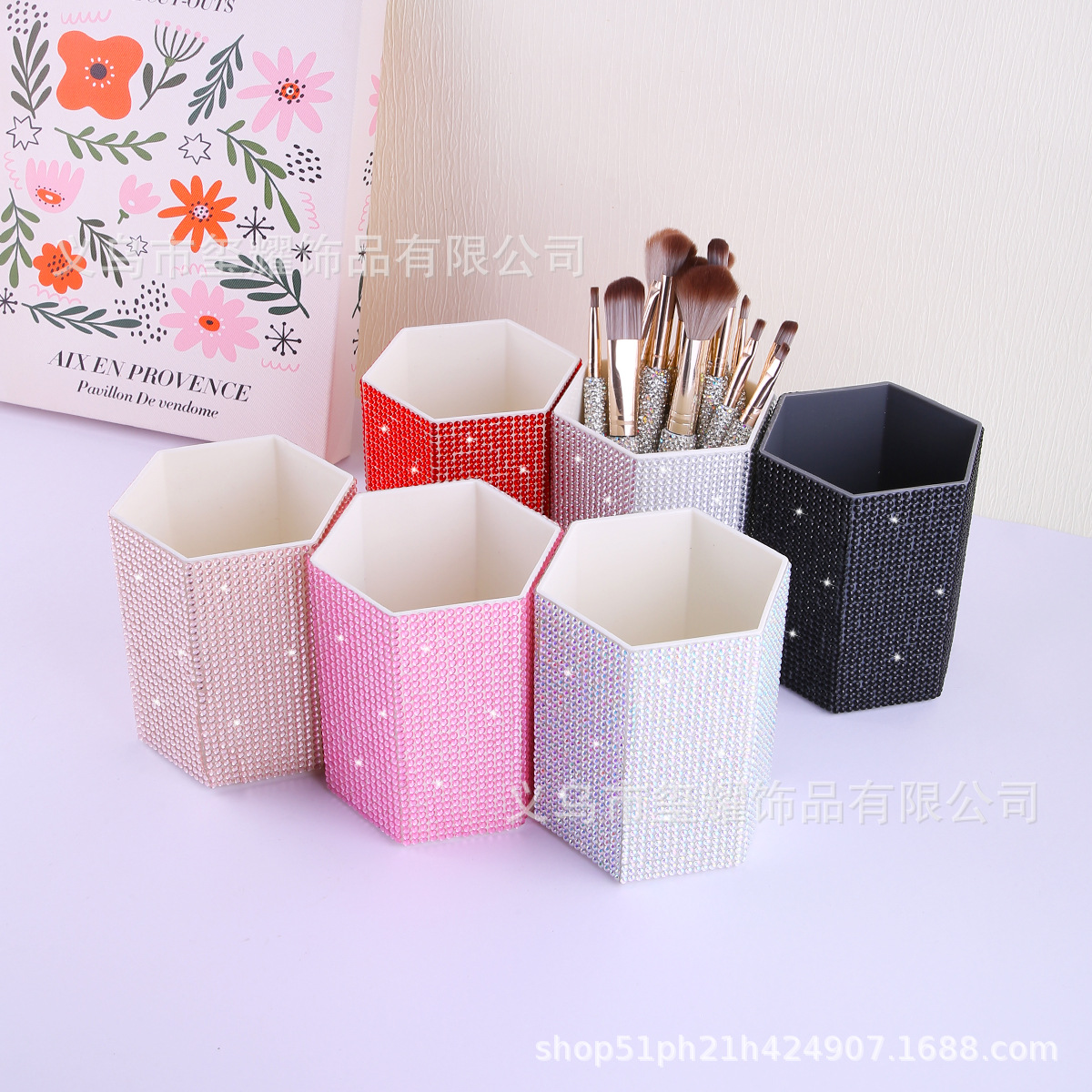 ダイヤモンドがちりばめられた化粧ブラシ収納バケツ大容量ペンホルダー口紅眉毛ペンシルオーガナイザーボックス高級デスクトップ収納ラック