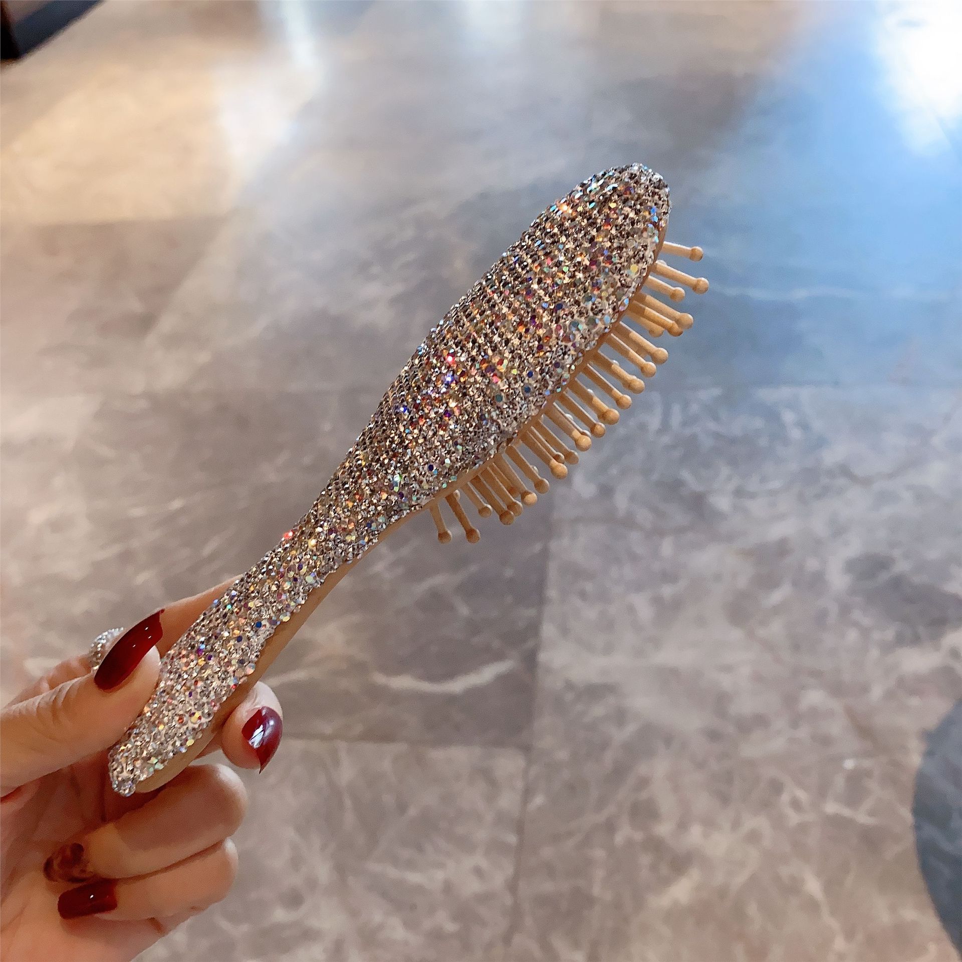 豪華でクリエイティブなダイヤモンドメイクアップコーム、マッサージコーム、ダイヤモンドがちりばめられた木製ポータブルクロスボーダー外国貿易工場直販
