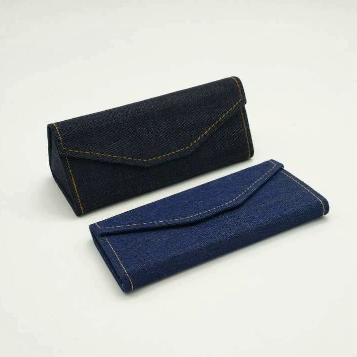 高級感の高い顔の値の手作りの高級なデニムの線を結んで三角のメガネの箱のファッション的な男女のサングラスの収納を畳みます。
