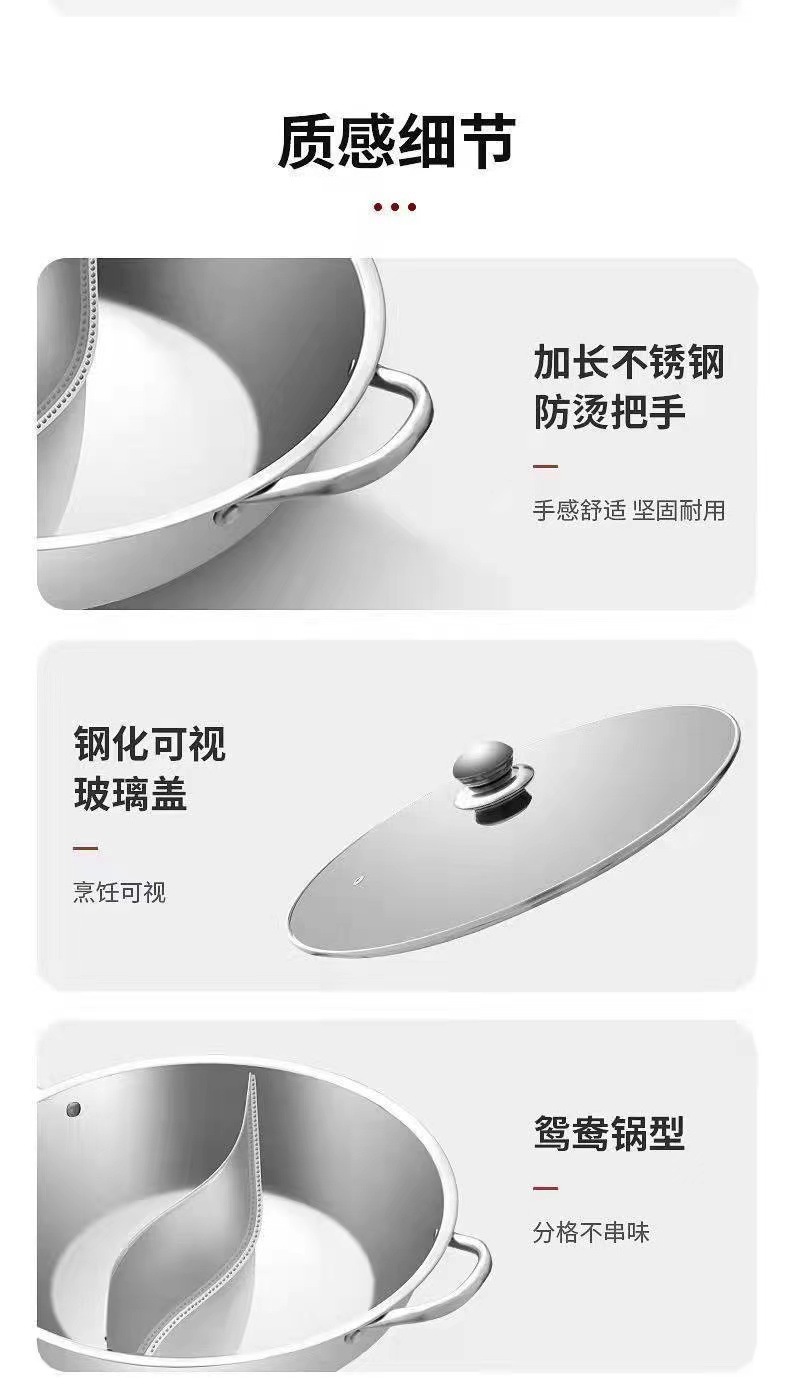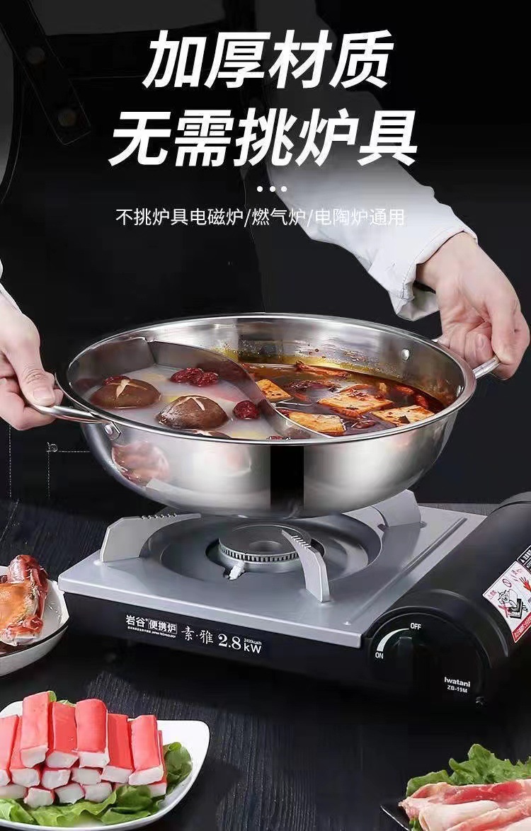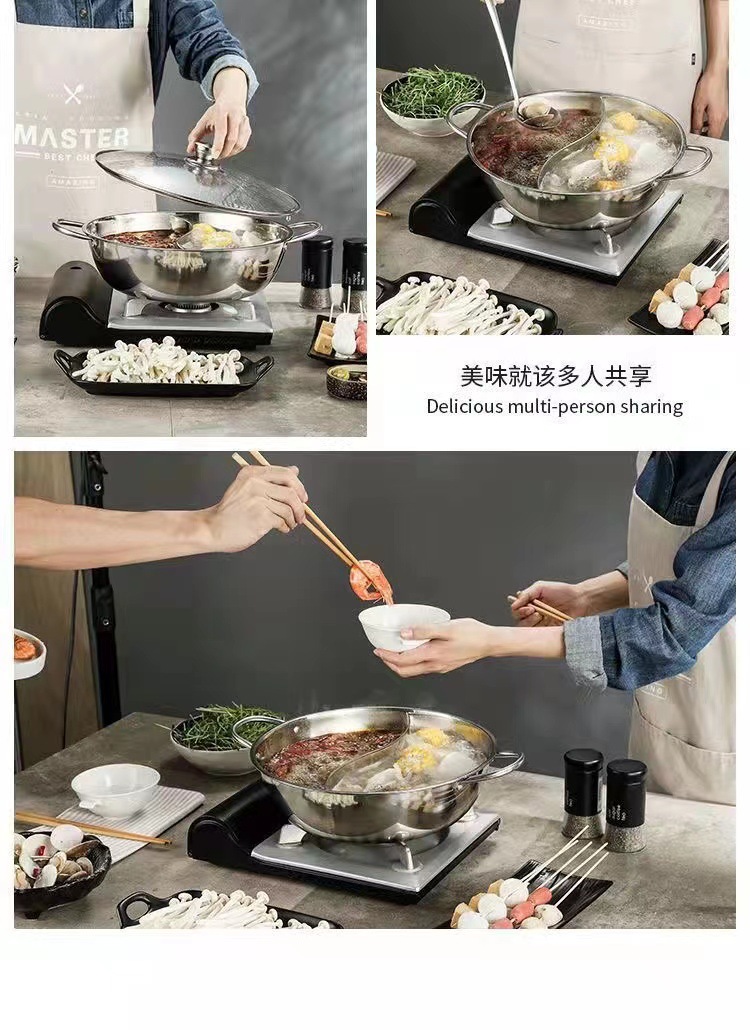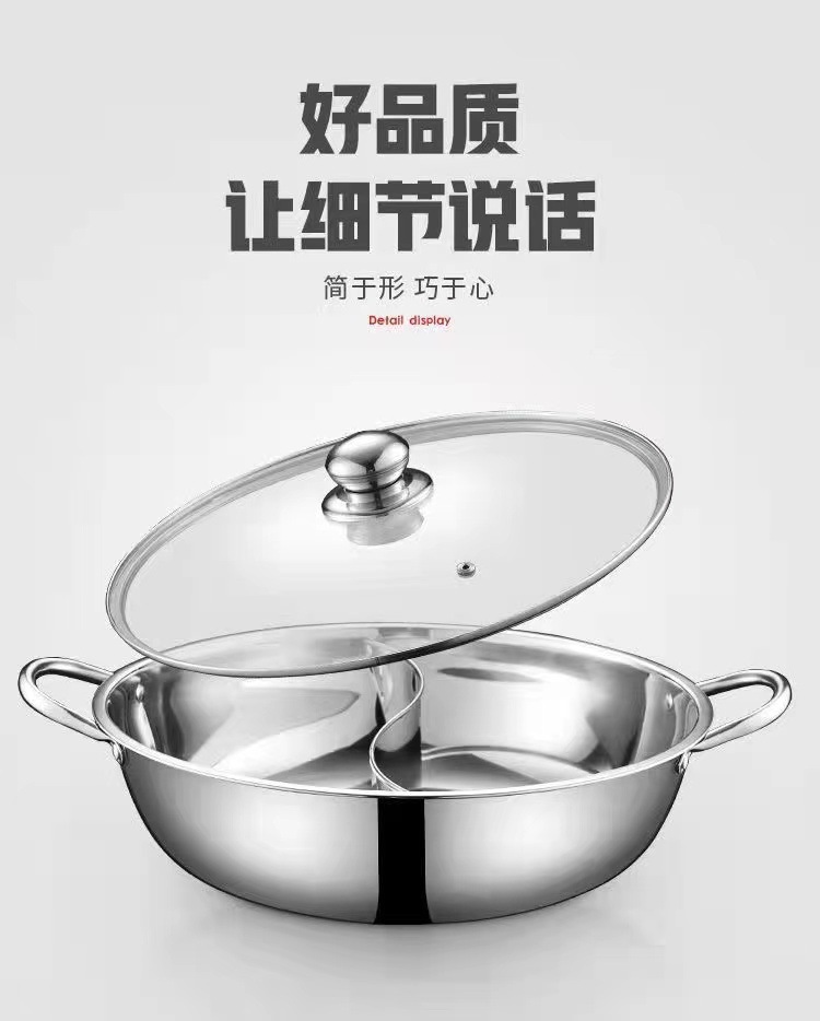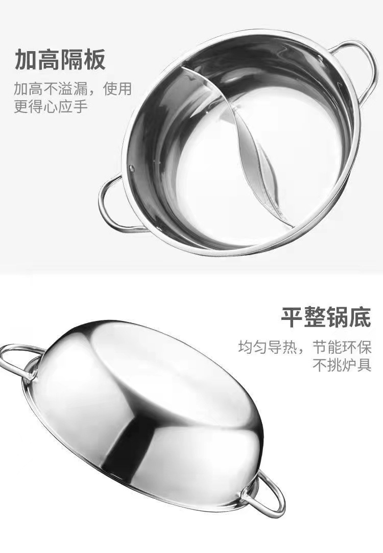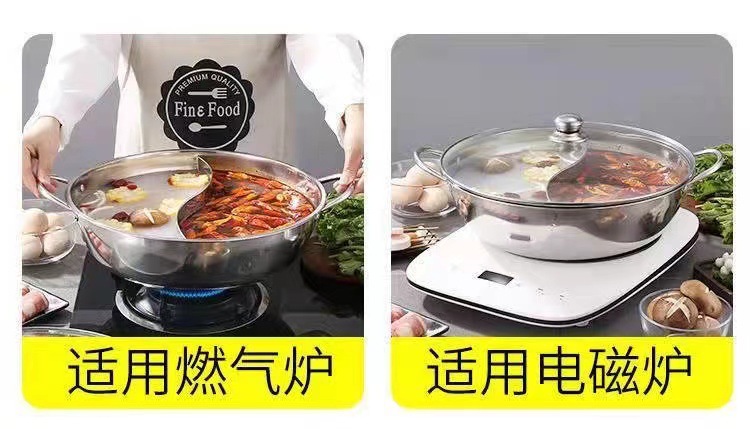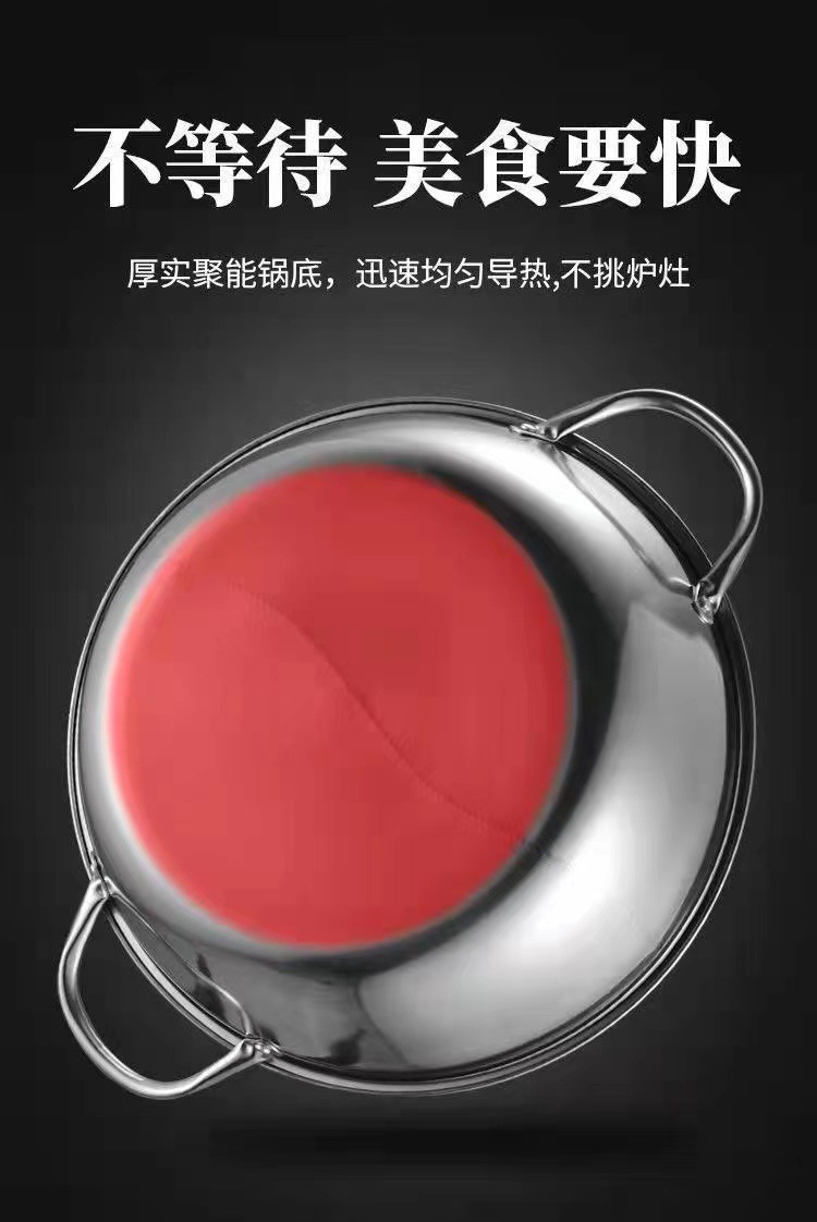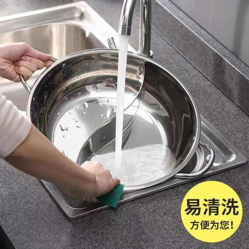 特厚ステンレス双耳炒め鍋両用蒸し器は鍋の大型のフライパンの電気ストーブのガスストーブの通用鍋の器具にくっつかないです。