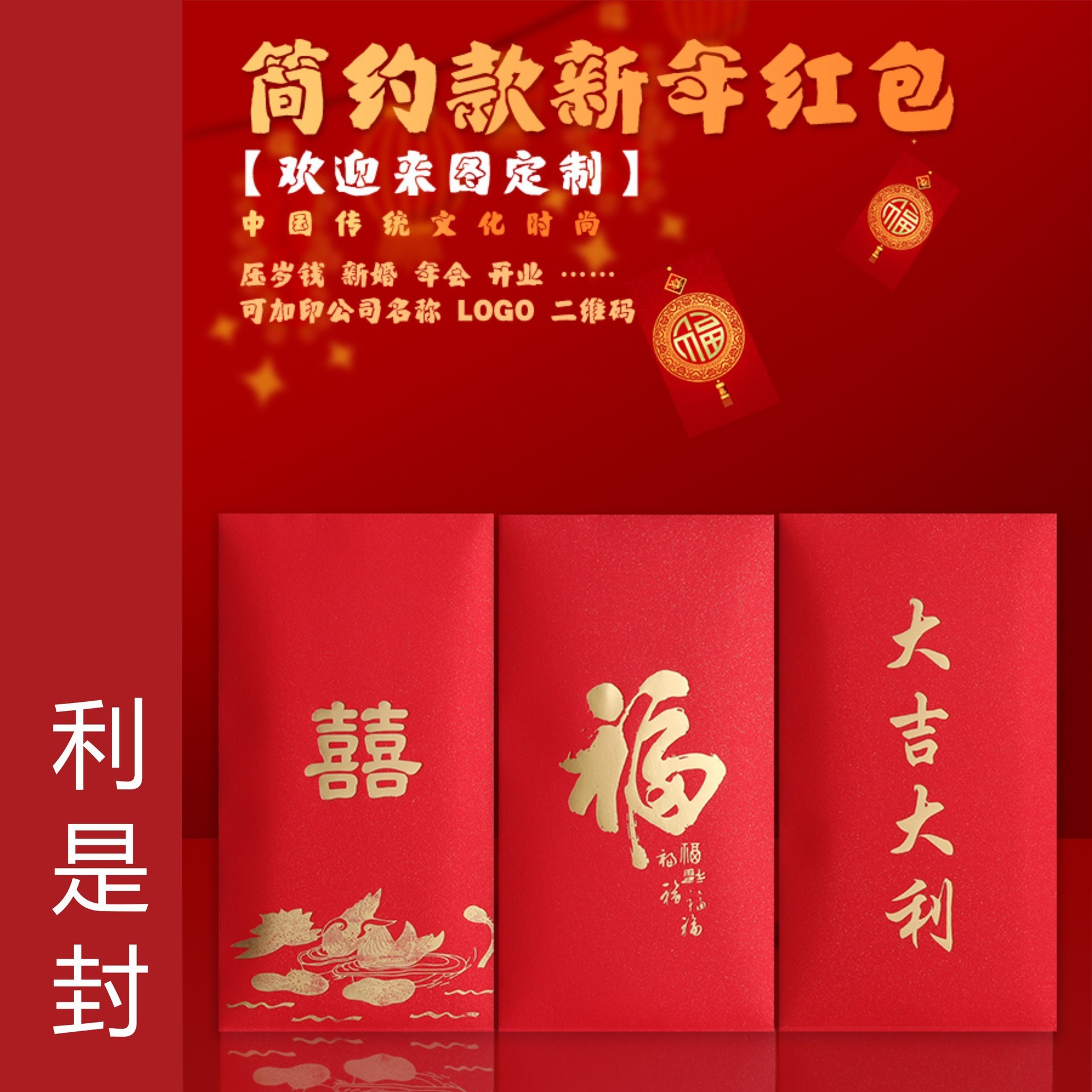 現物の金箔の赤い包みの書道のアイデアの赤い包みの袋の中国式の利益は新年の個性の通用の金箔の赤い包みの袋を密封するのです。