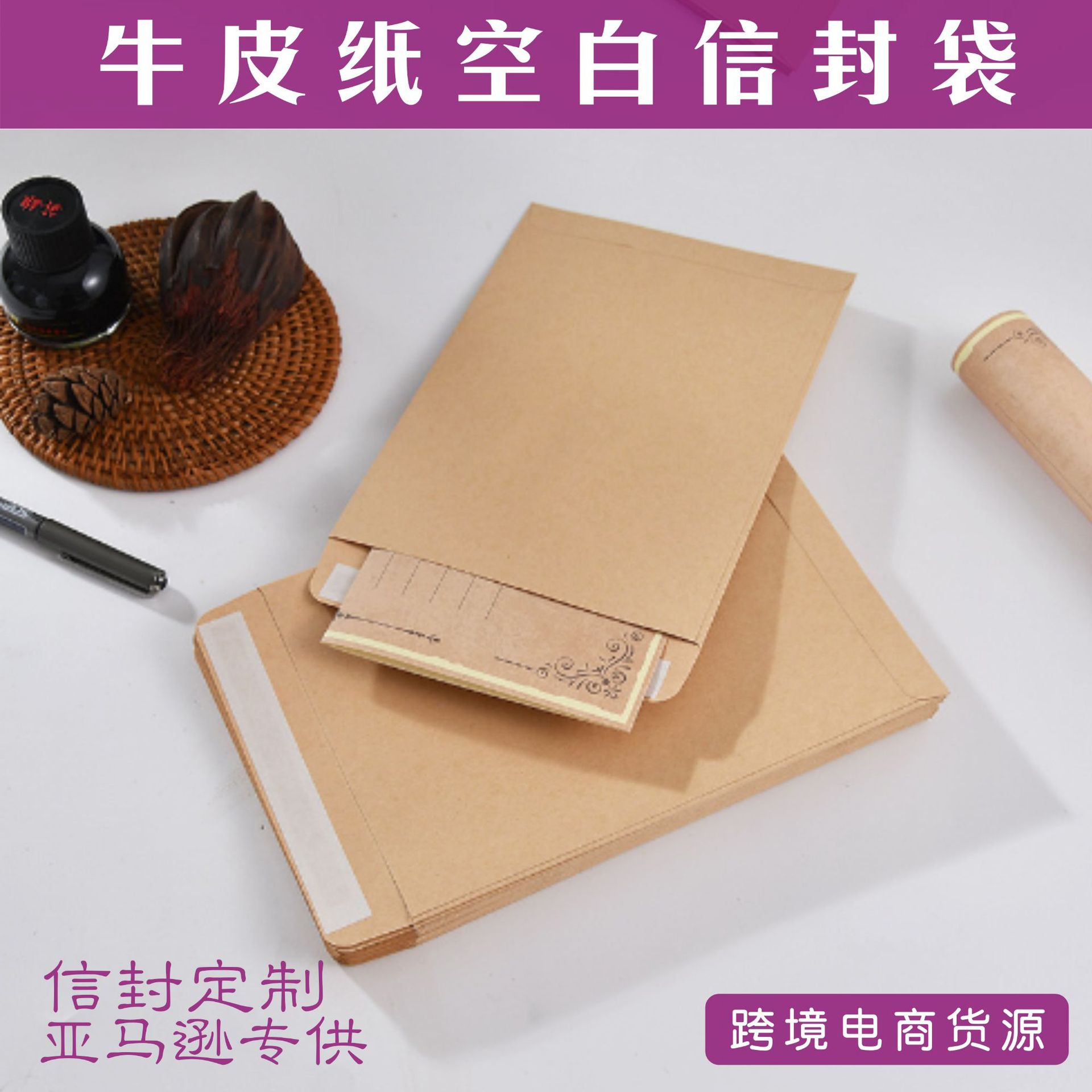 空白無字a4クラフト紙封筒5号7号厚手インボイス封筒黄色クラフト紙袋カスタム印刷製作
