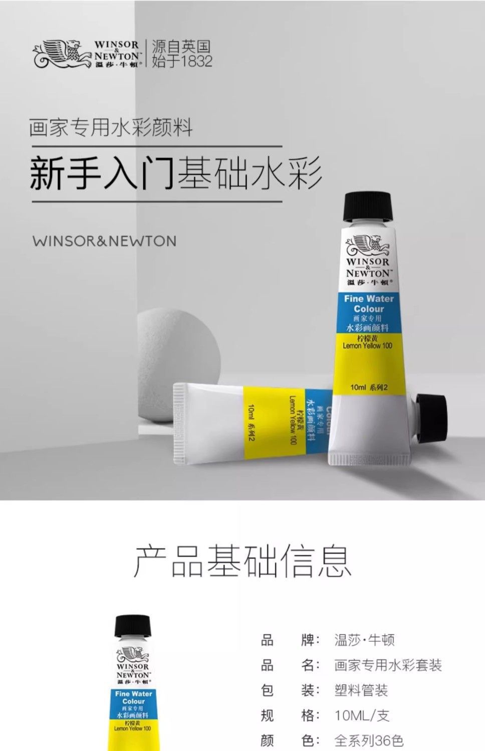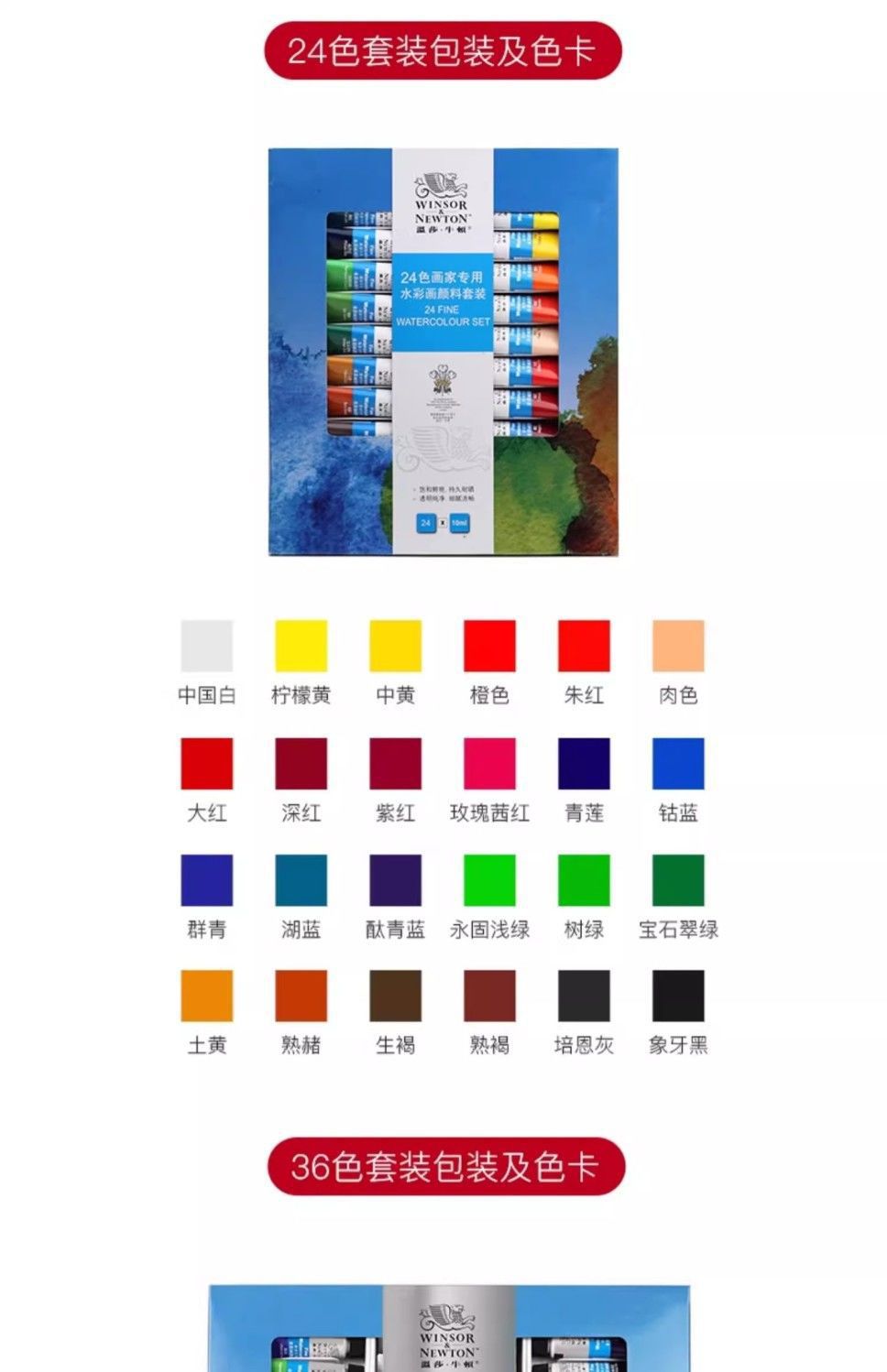 ウィンザーニュートン水彩絵の具画家専用10ml単枝管状水彩絵の具36色全セット初学用