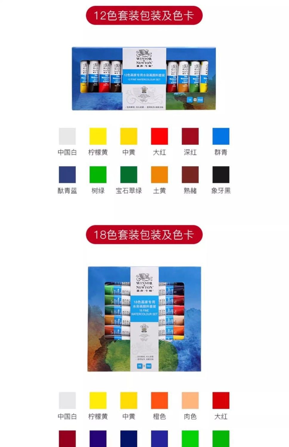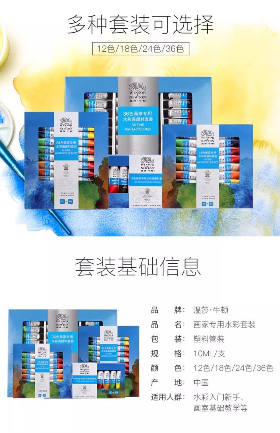 ウィンザーニュートン画家庭用10ml水彩絵の具セット12色24色36色絵画絵の具美術卸売り