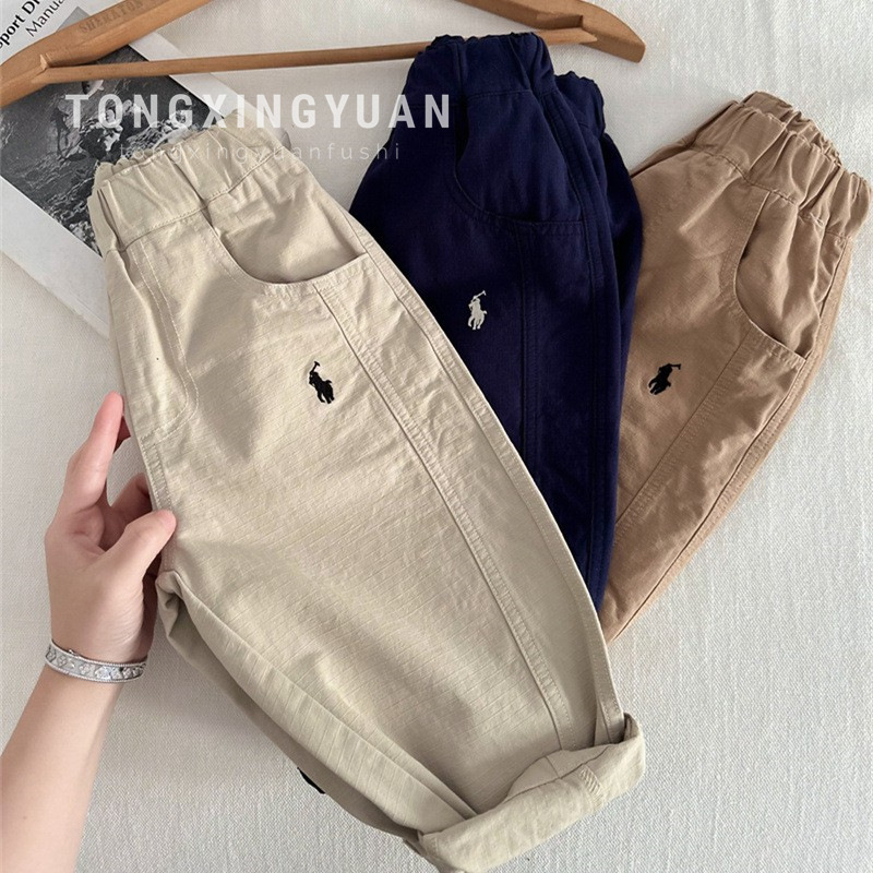 童星園2025秋新作 馬刺繍入りキャロットダッドパンツ ゆったりハーレムカジュアルワークパンツ ロングパンツ トレンド