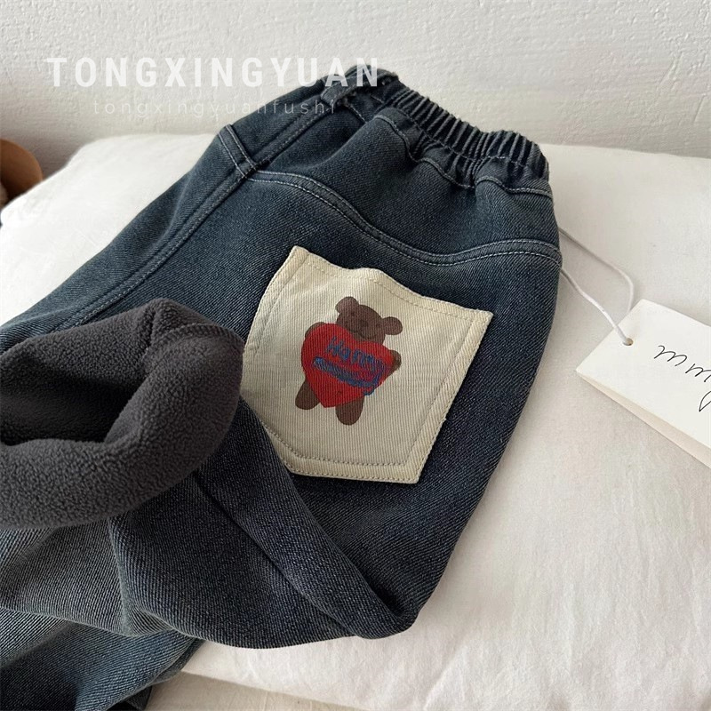 子供の星の丸い子供のズボンの冬の男女の子供の漫画の熊のベルベットのジーパンの赤ちゃんの一体の絨毯のカジュアルなストレートズボン