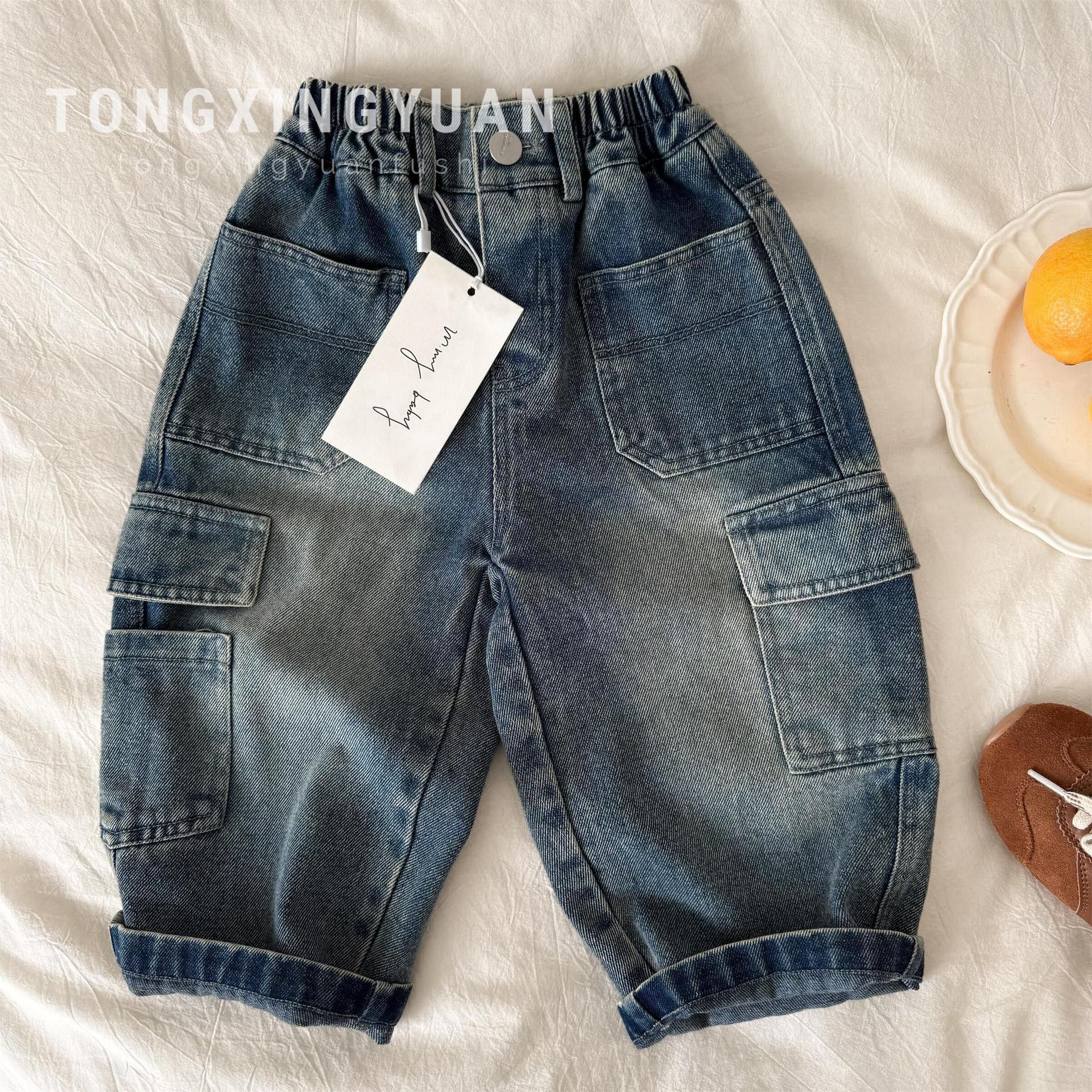 子供ジーンズ男の子秋パンツ2025男の子パンツ春秋スタイル子供カジュアルパンツトレンディな子供
