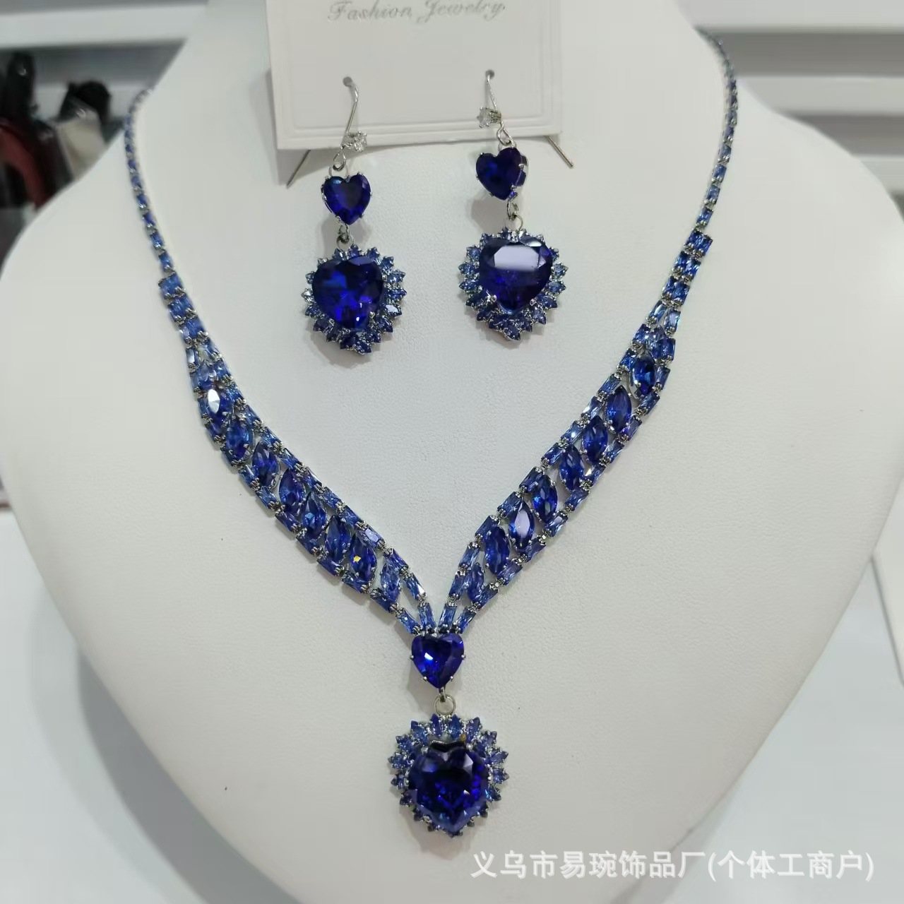ファッショントレンドジルコン贅沢ネックレスイヤリング小桃心セットins生放送起爆着スカート着用