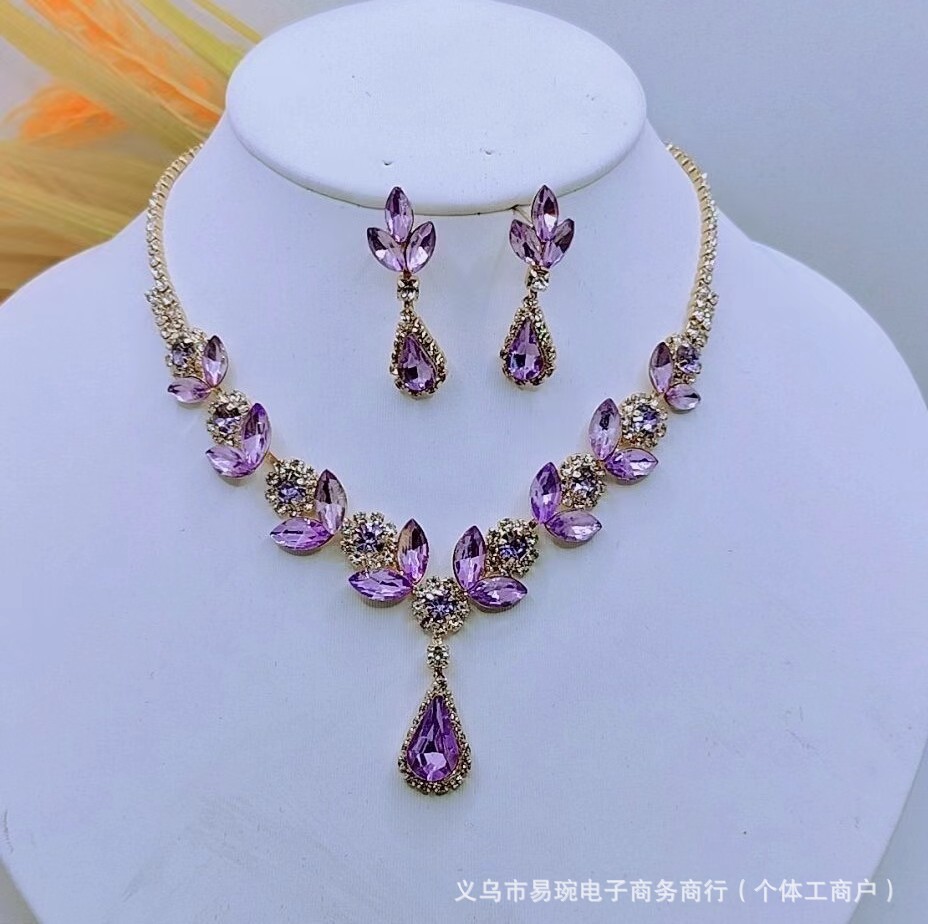 花嫁アクセサリー水晶紫水ドリルネックレスイヤリングセット結婚ドレスアクセサリー韓国式