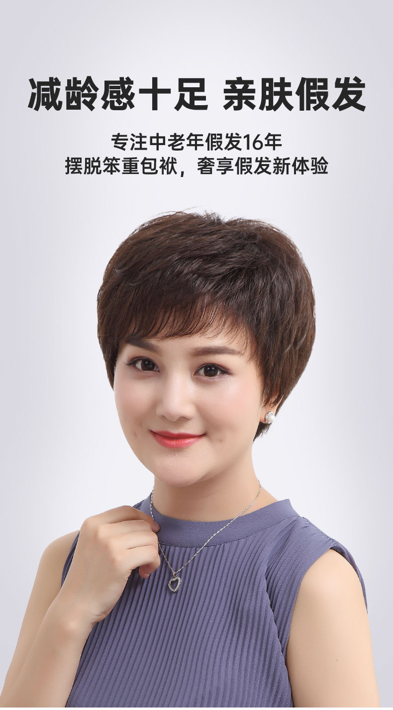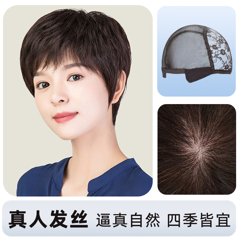 中高年かつらレディース真髪ママショートヘア高齢者ショートストレート化学療法かつらカバーかつらシミュレーションヘッド