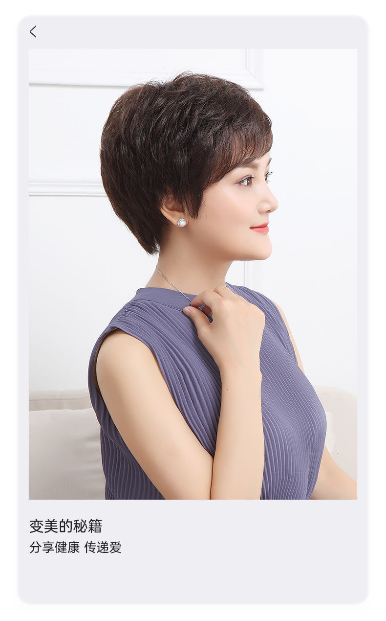 かつらの本物の髪のショートヘアの女性の頭カバーのお母さんはリアルです。