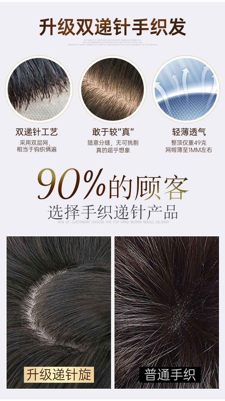 本物の髪の中高年のかつらの女性は本当にお母さんの中年の女性を送ります。