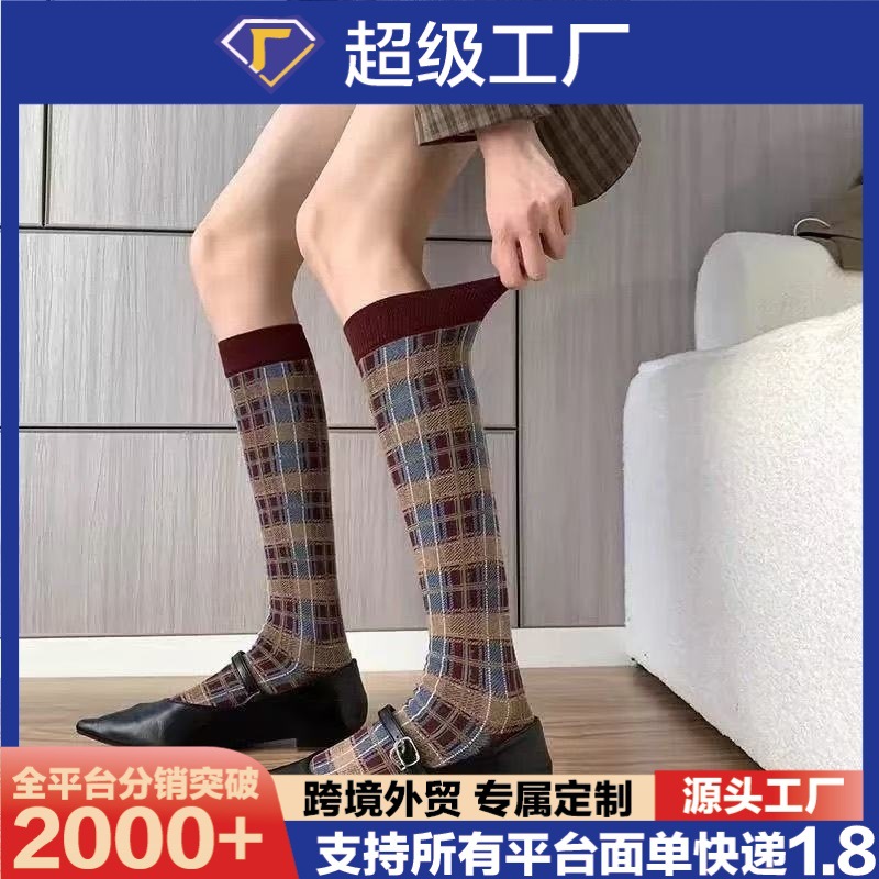 秋冬复古老钱风新潮流超绝时髦秋高级气质复古格纹显瘦摩登小腿袜