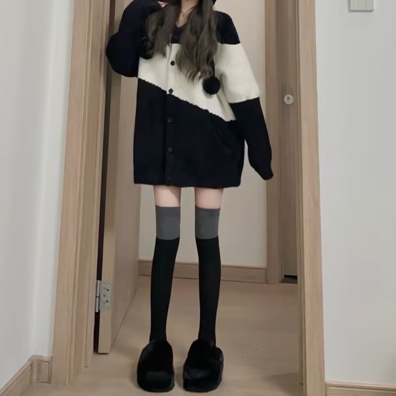 中筒の黒い灰色のつなぎ合わせの長い筒は膝の半分の足のinsの潮の学生の黒いすねの靴下の色を合わせます靴下の女性の秋冬の金
