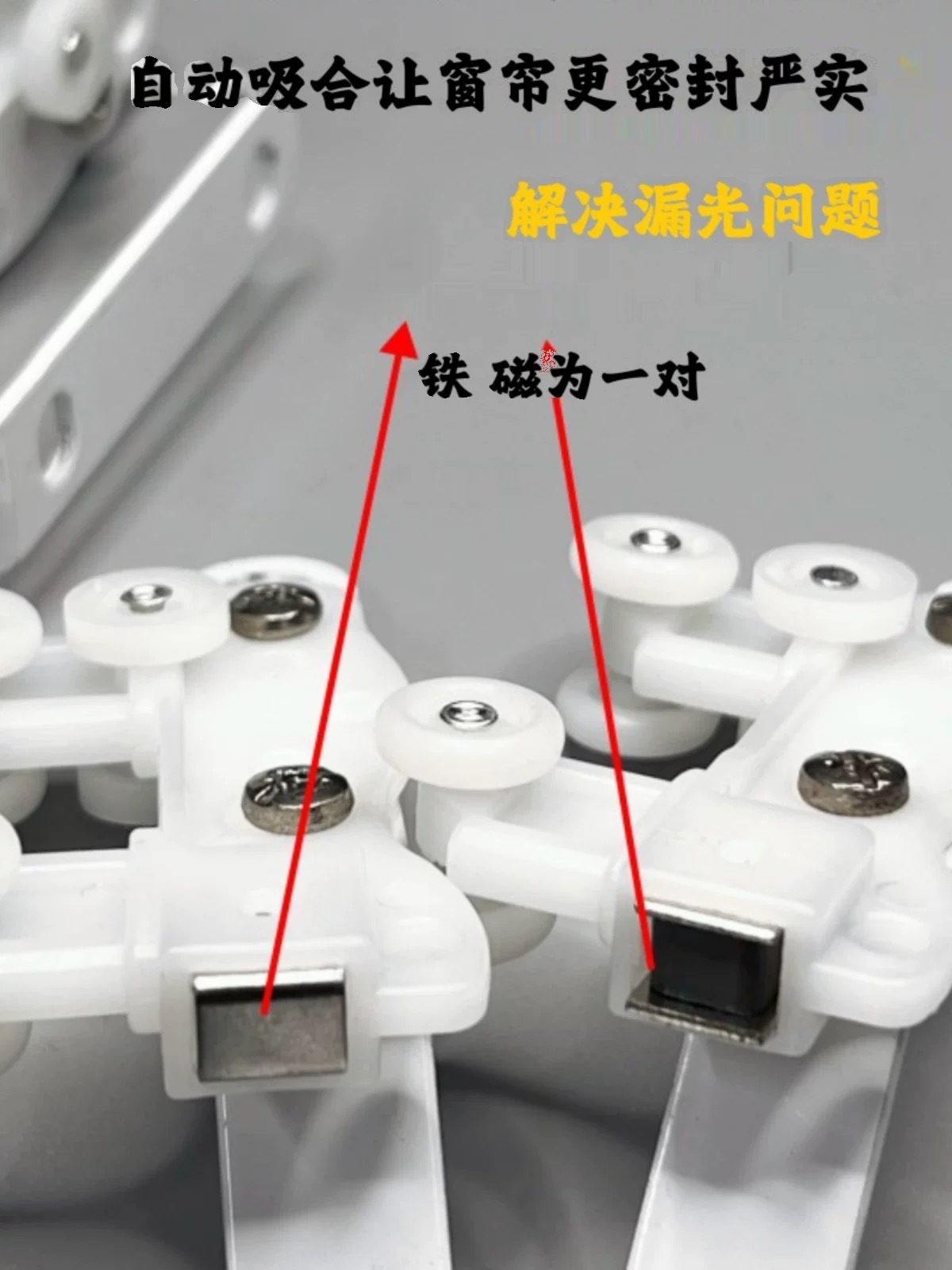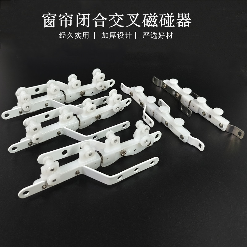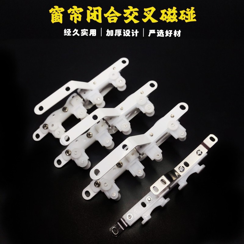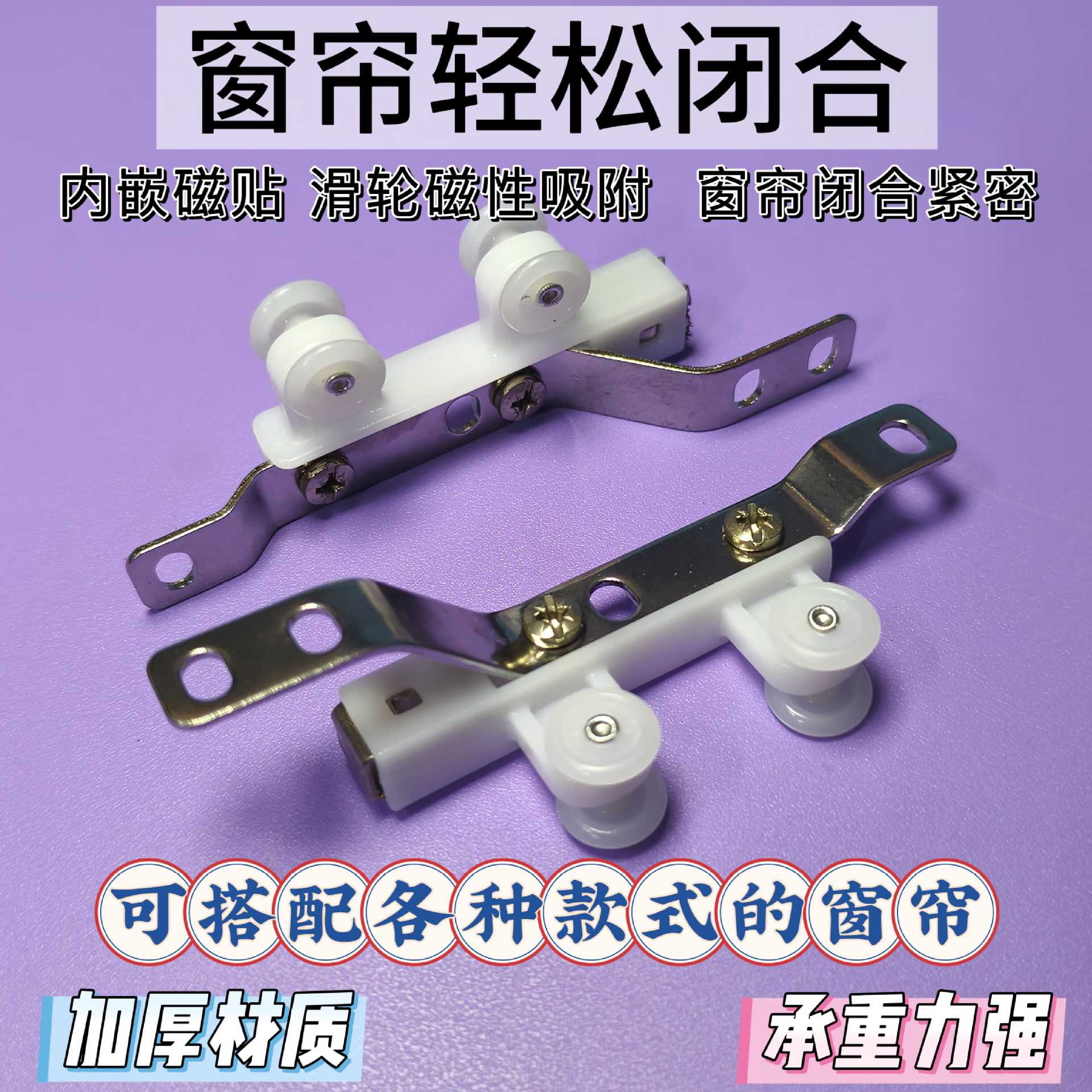 窗帘配件磁吸闭合器交叉磁碰滑轮直轨弯轨磁碰自动磁吸防漏光神器
