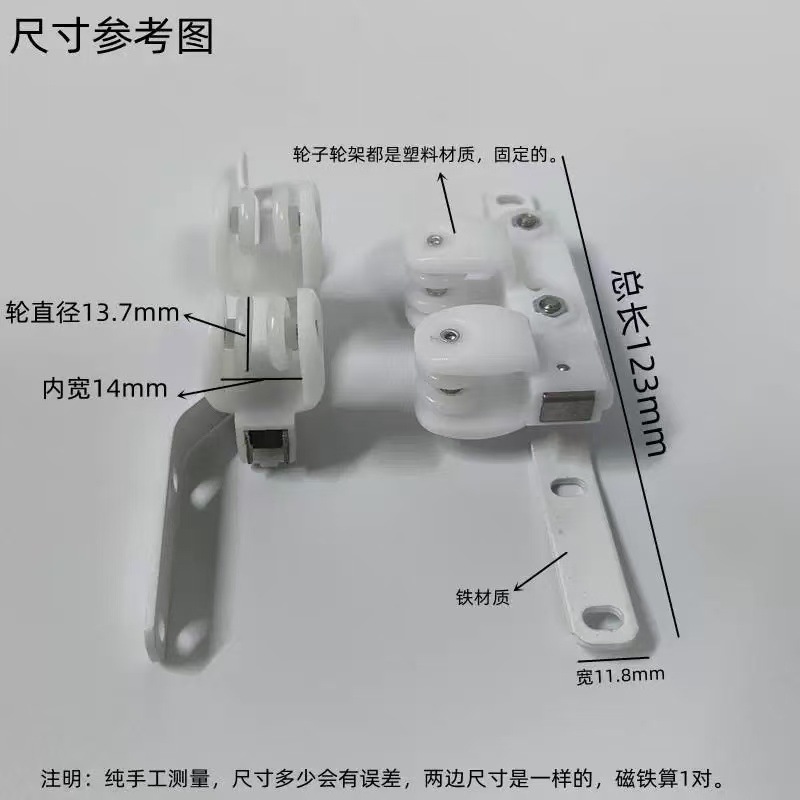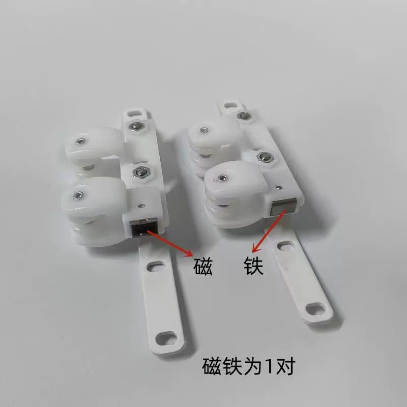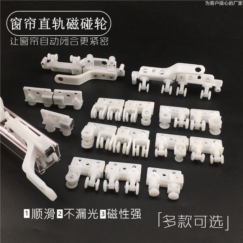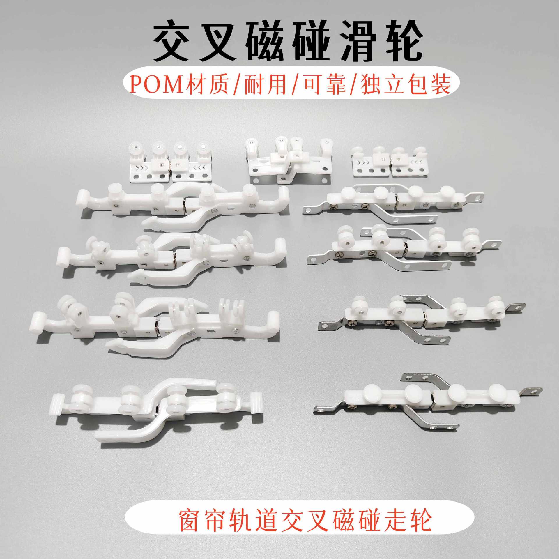 窗帘轨道配件交叉磁碰闭合防漏光滑轮方轨弯轨pom磁铁滑轮批发