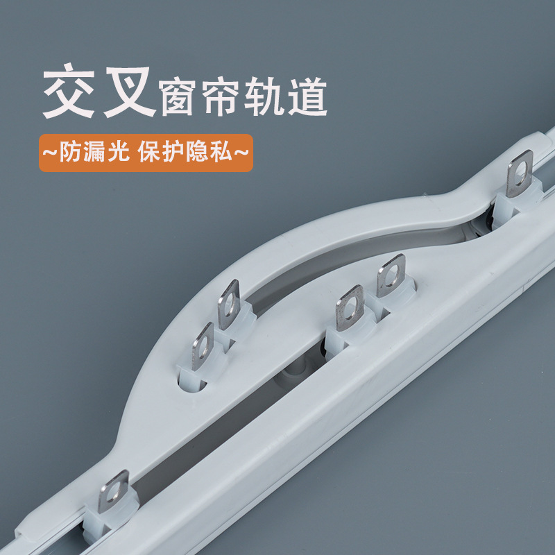 防漏光交叉窗帘轨道遮光交叉器滑道窗帘杆双轨静音顶装挂钩式滑轨