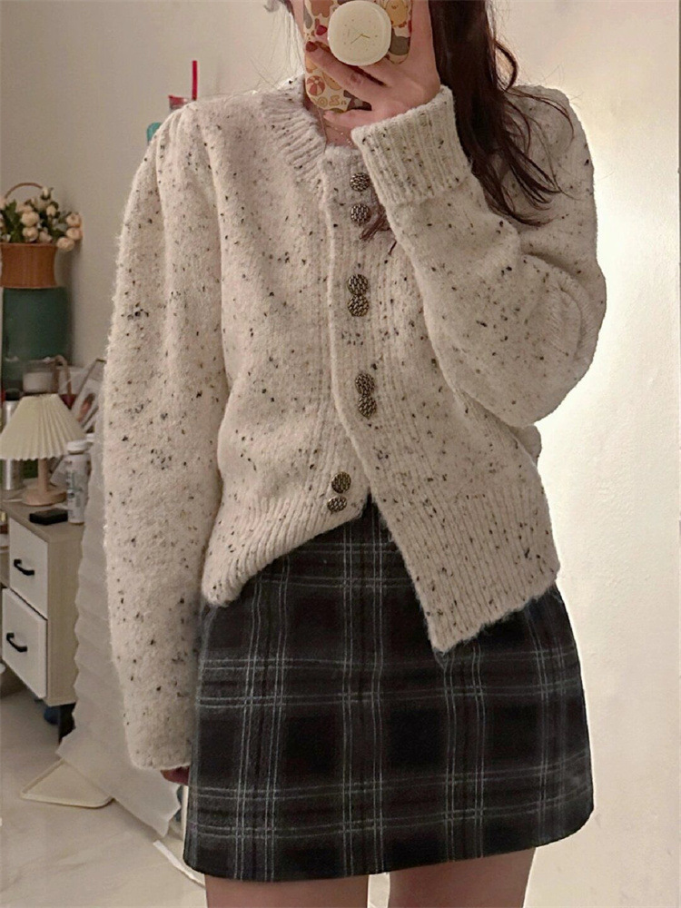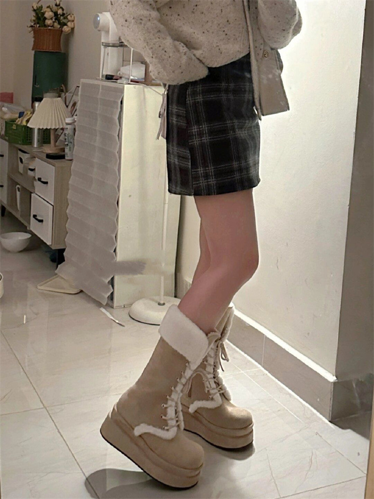 大きいサイズ メイラード レトロ カーキ色 チェック柄 ハーフスカート レディース ウール ロングスカート 秋冬 2025 ウール ハイウエスト スカート