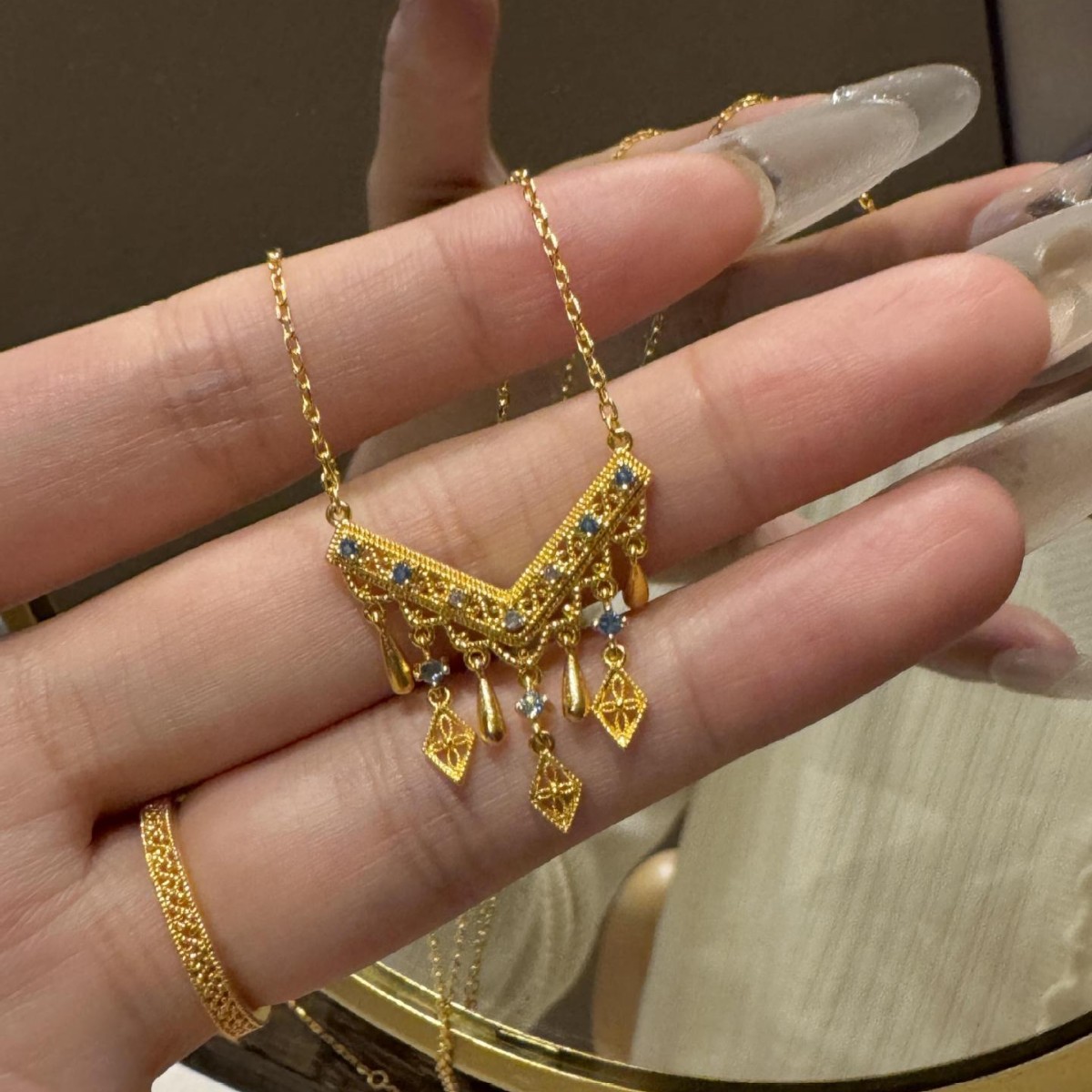 中古ドットドリル八宝コンパスペンダントネックレスレディースヴィンテージ古代伝統ネックレスニッチデザイン鎖骨チェーン