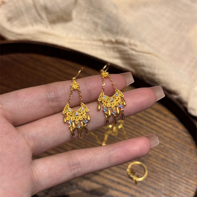 軽豪華新中国式古法流蘇水滴ピアス女性の精緻な高級感イヤリング小衆個性デザイン感耳飾り