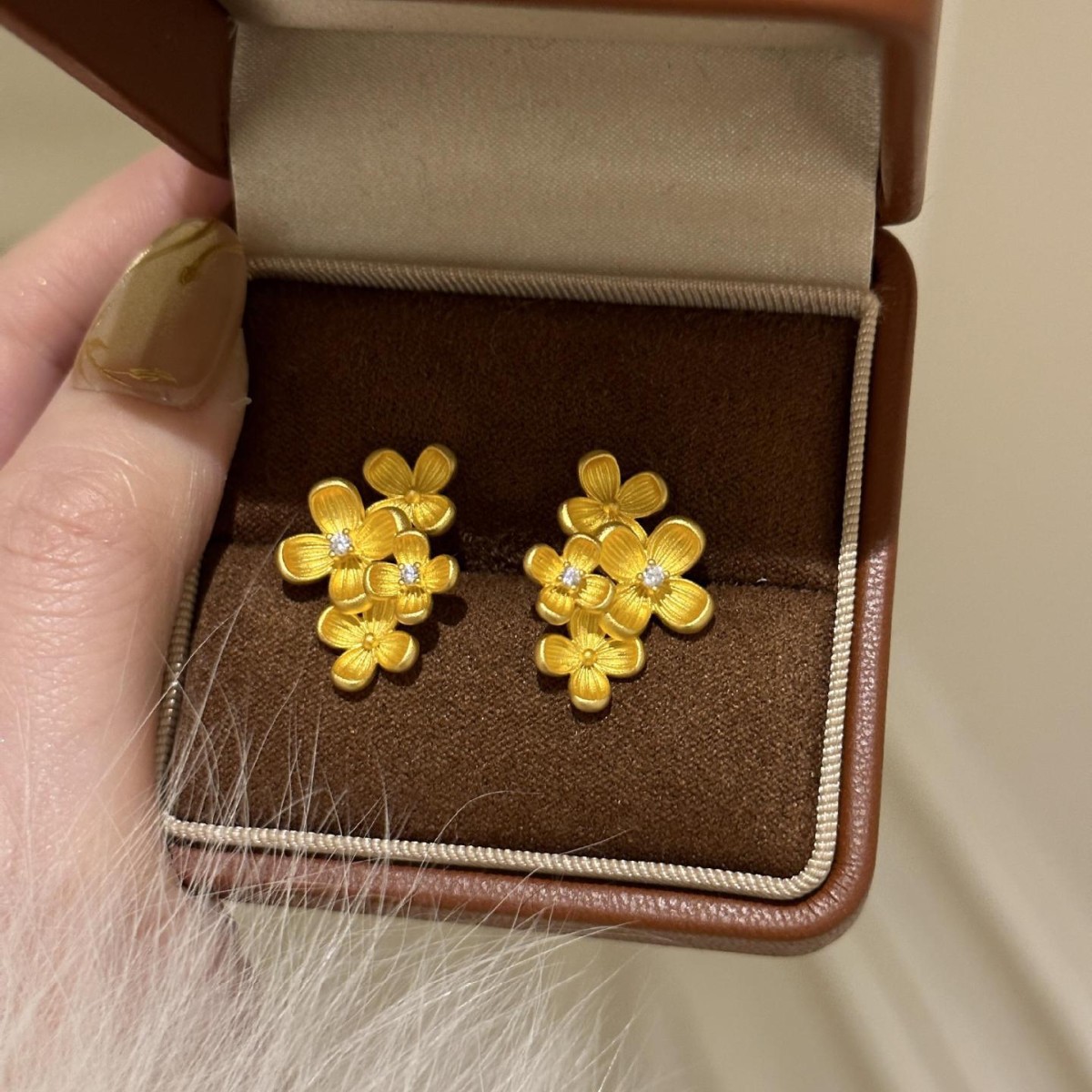 轻奢新中式点钻桂花耳钉女vintage古法传承耳环小众设计感耳饰品