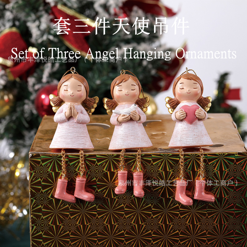 跨境 新款圣诞节装饰挂件3个天使吊件居家创意挂件装饰树脂工艺品