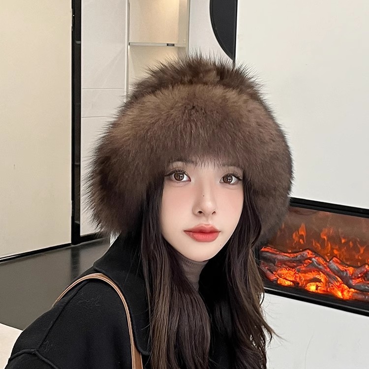 水貂毛帽子女秋冬季貂毛狐狸毛渔夫帽水貂皮草帽冬季时尚保暖盆帽