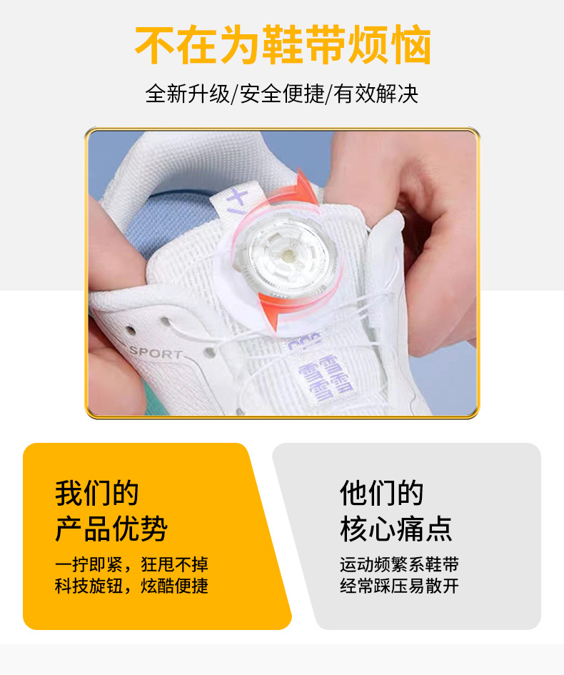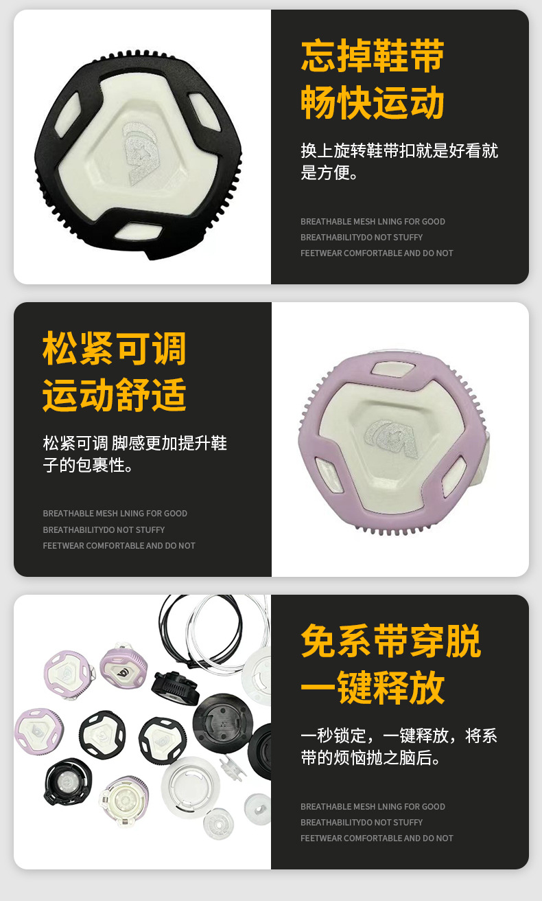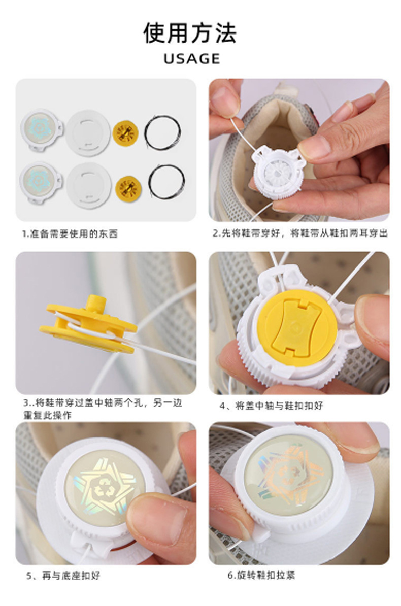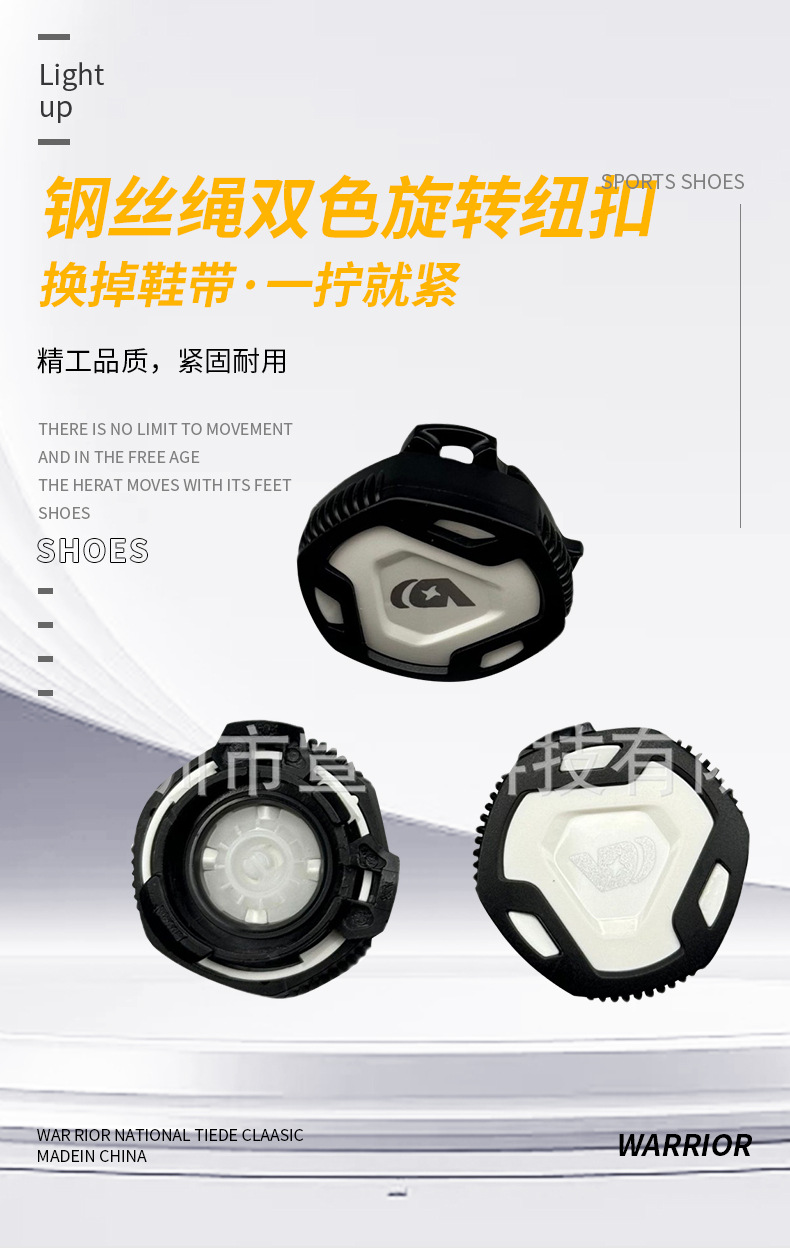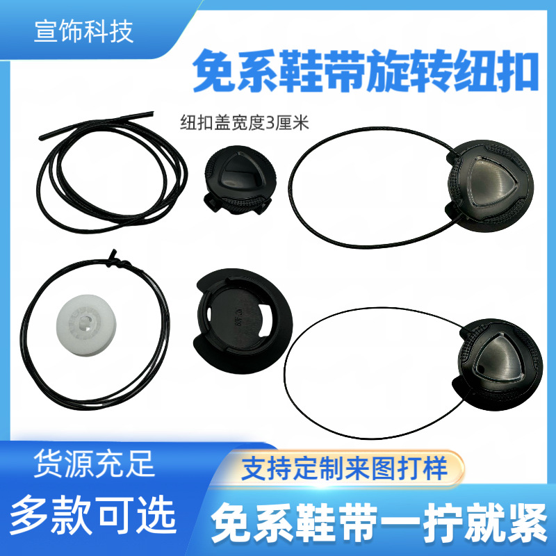 科技旋转纽扣鞋扣免系鞋带懒人鞋粗绳钢丝绳通用双色款