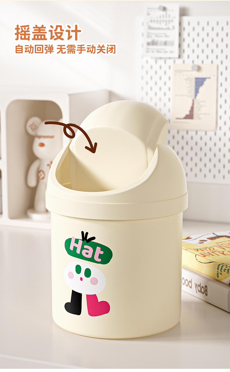 汇骏新品高颜值桌面垃圾桶家用带盖可爱置物桶学生宿舍收纳纸篓