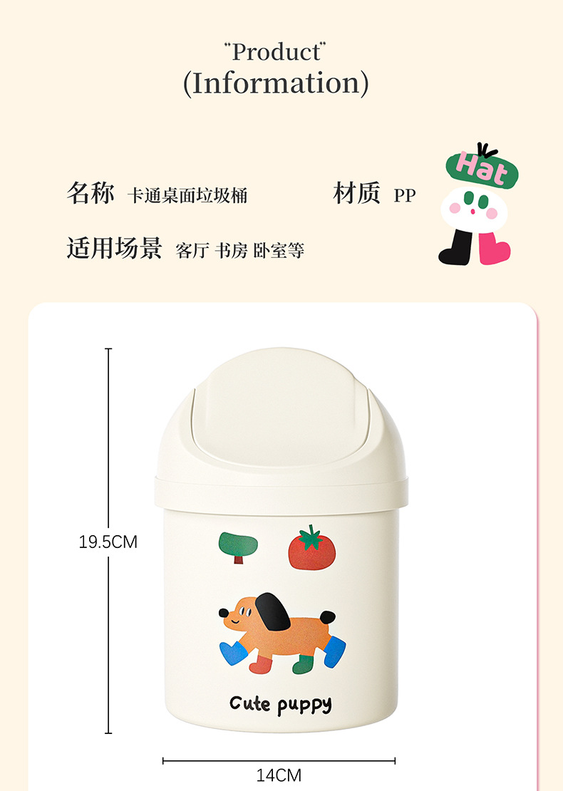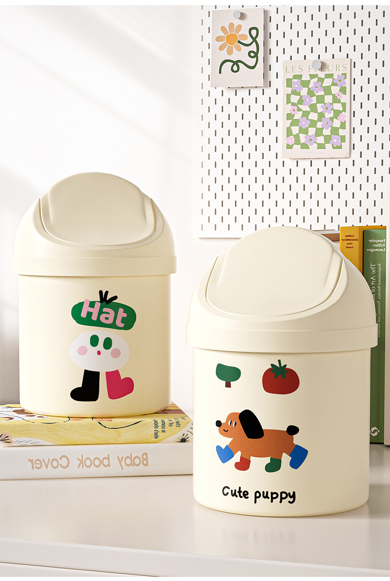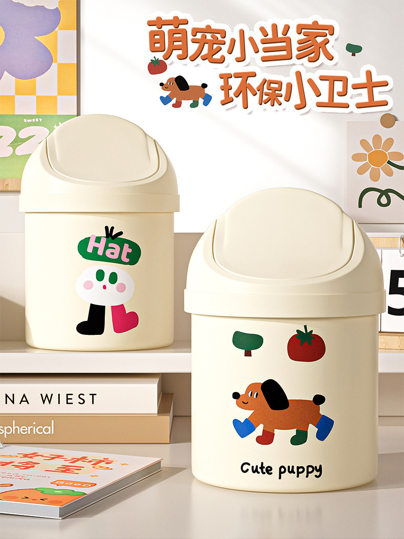 かわいい風合いの卓上ゴミ箱、家庭用インスタ映えキッチン、リビング、オフィス、トイレ用、ドーパミン圧力リングペーパーバスケット