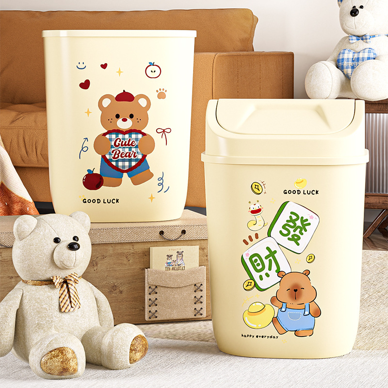 ゴミ箱クリーム風かわいいアニメ家庭用トイレキッチン長方形寮紙かごスリット
