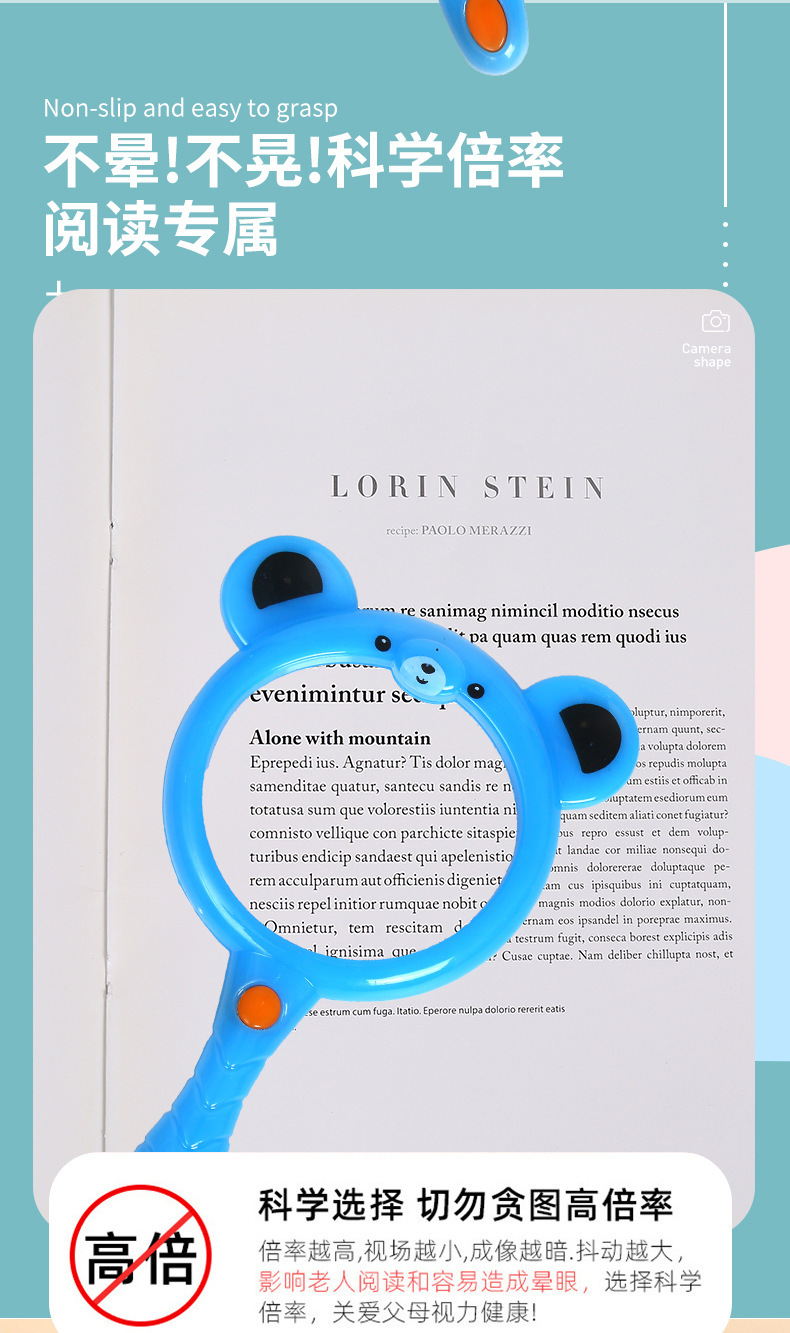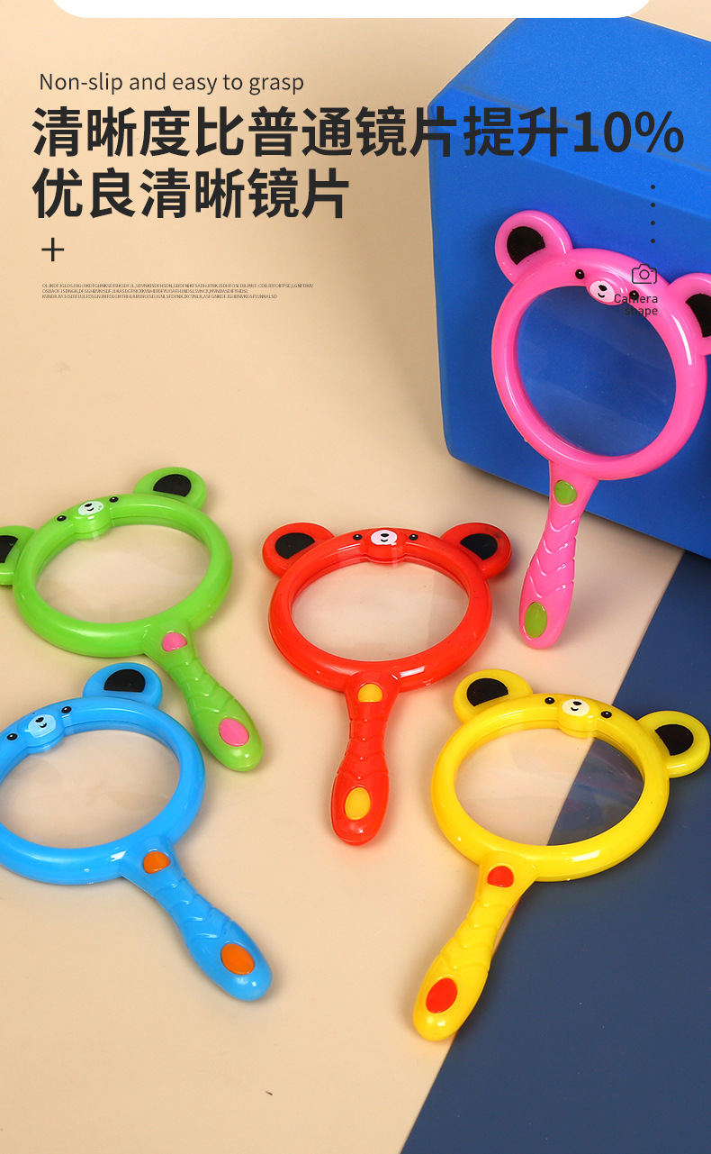 漫画の熊のカラーの高清のプラスチックのルーペの子供は科を探して卸売りの子供に実験のおもちゃを学びます。