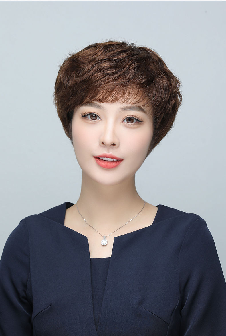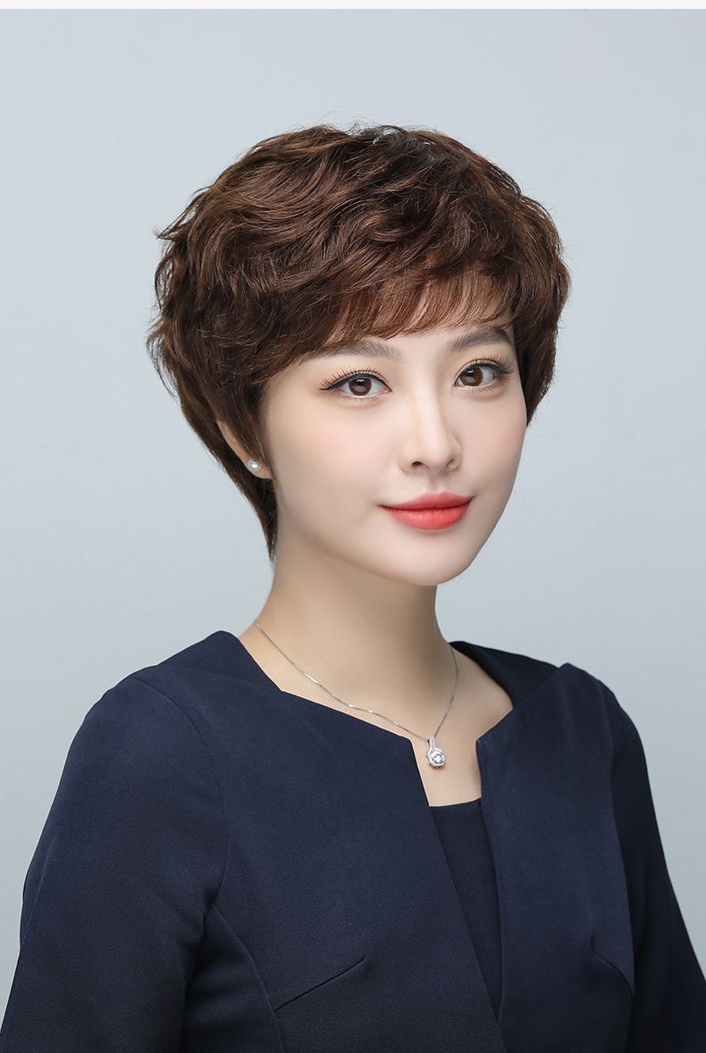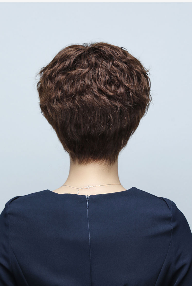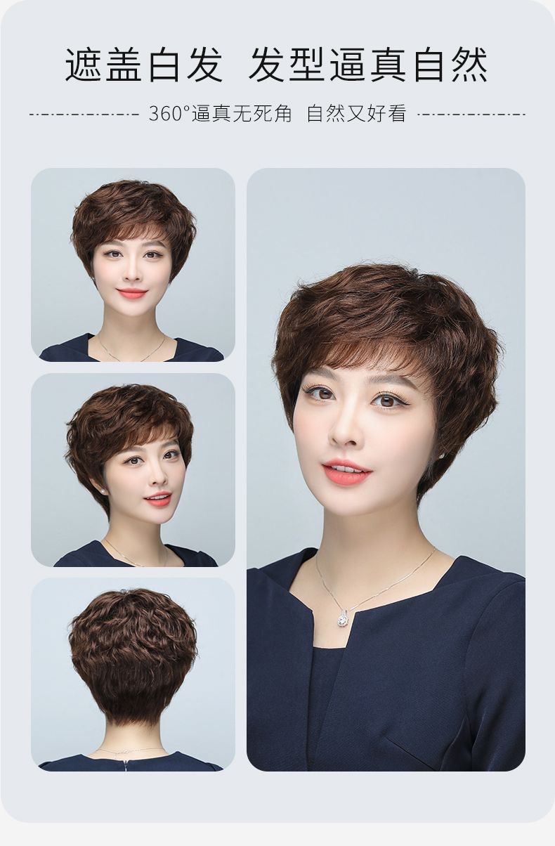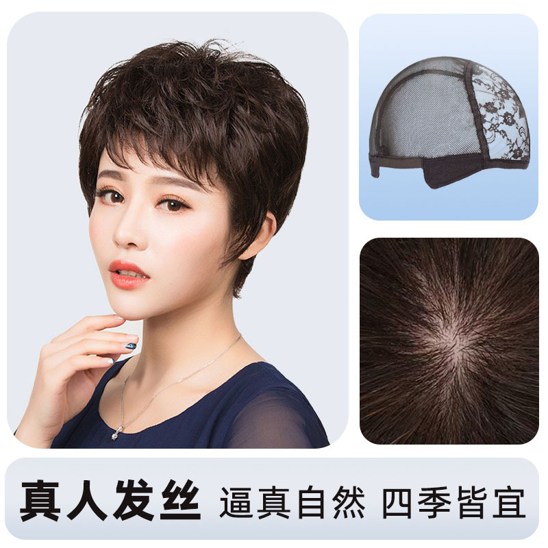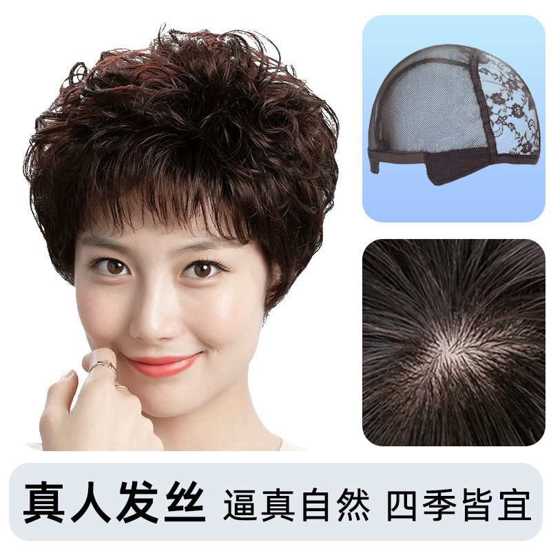工場直売かつら全頭カバー女性真人髪糸自然短巻きかつらカバー中高年かつら女性真髪
