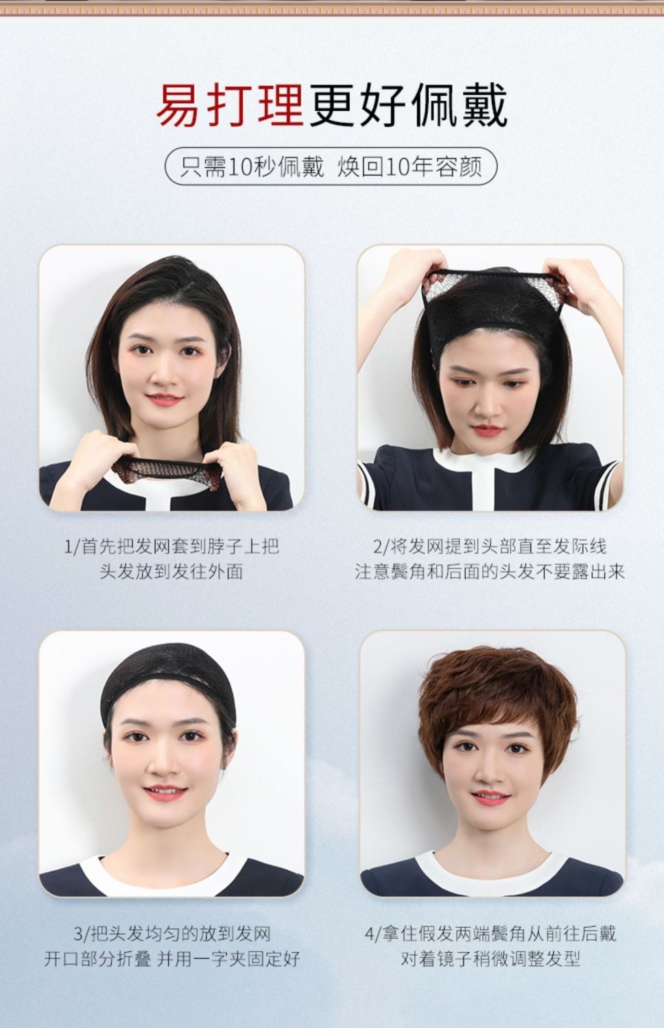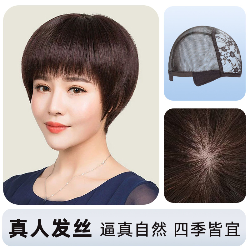 中高年かつらレディース真髪ママショートヘア高齢者ショートストレート化学療法かつらカバーかつらシミュレーションヘッド