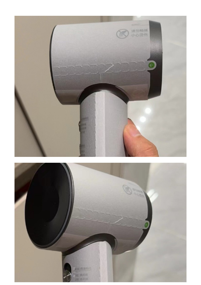 ヘアドライヤーの外殻を傷から守る保護フィルム、ヘアドライヤーのハンドルと本体に貼れる、簡単に剥がせるバター紙包装フィルム、カスタム対応