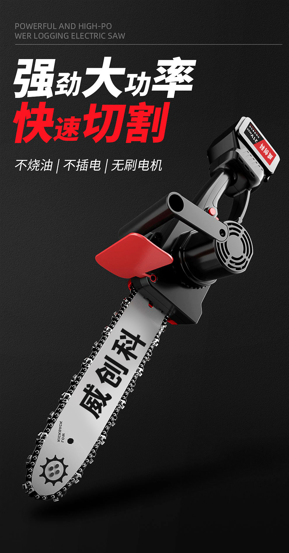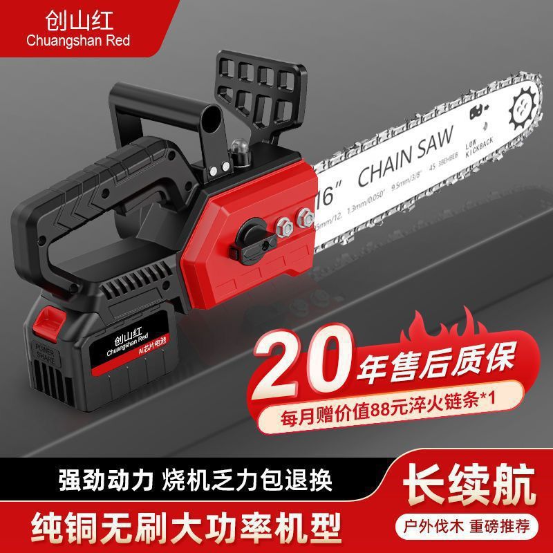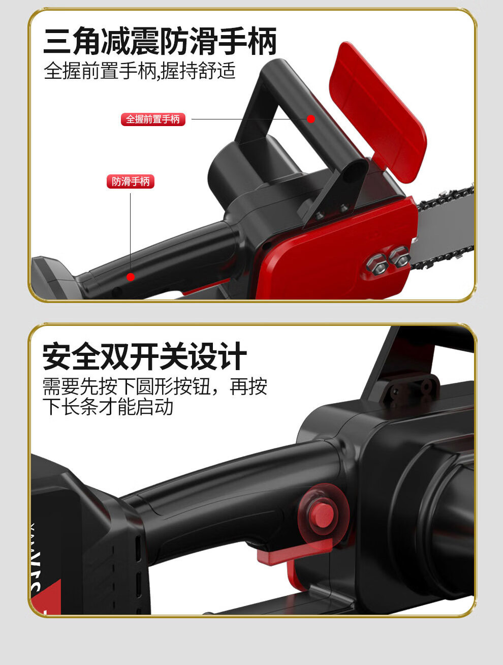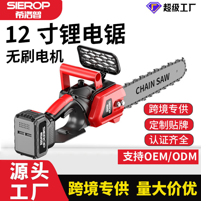 12寸锂电锯无刷充电手持式家用砍树伐木锯户外锯树劈柴电动电链锯