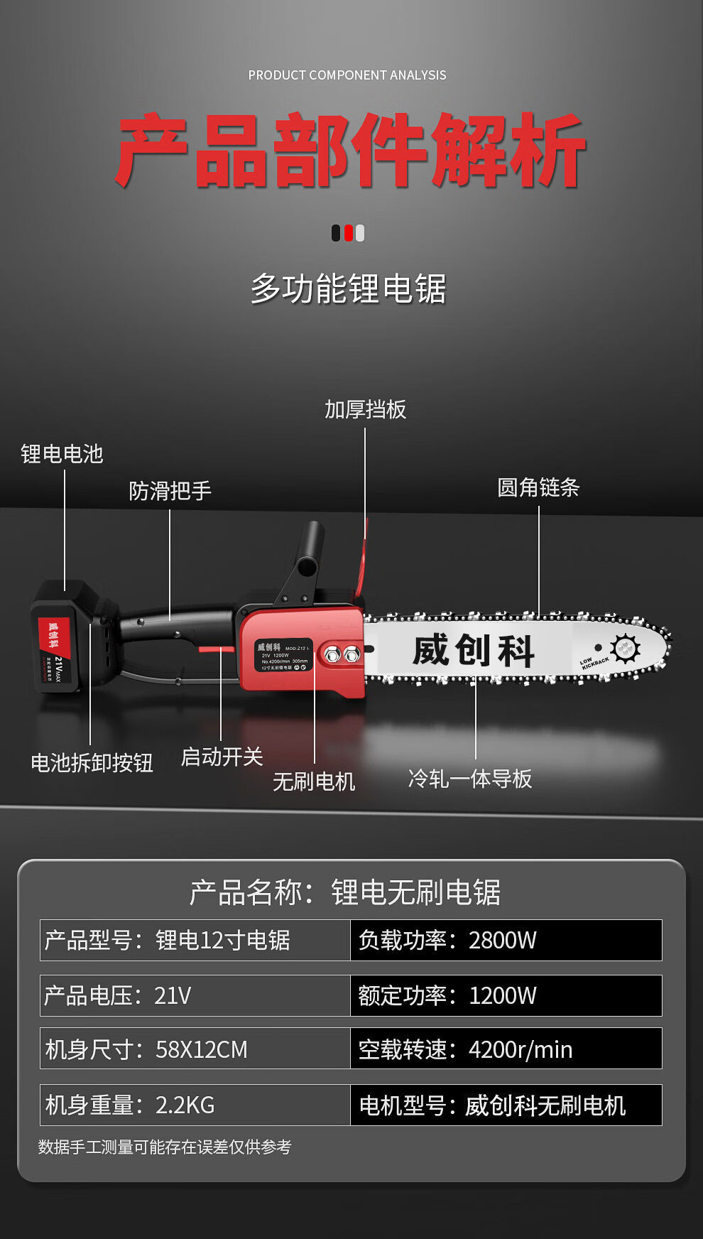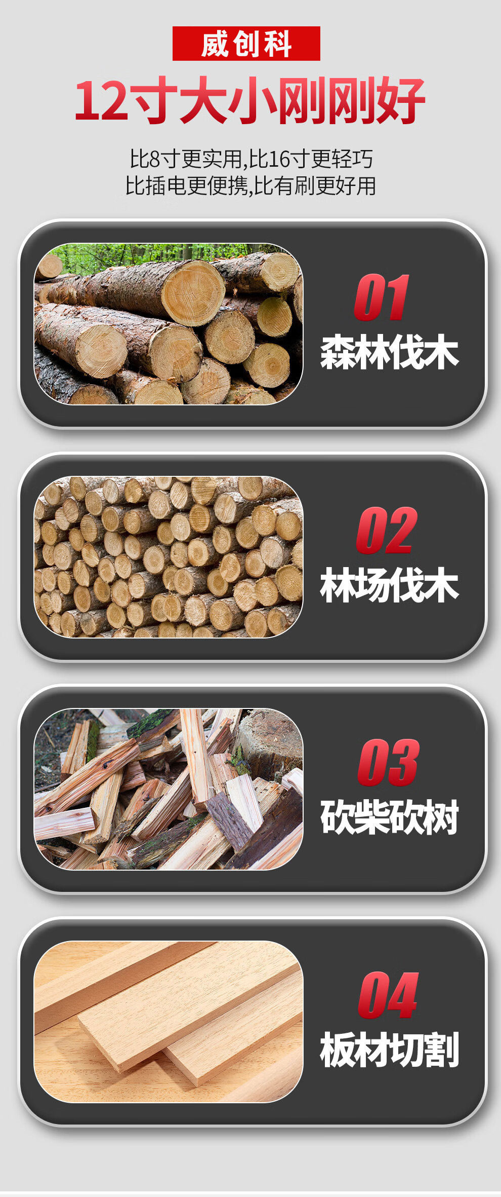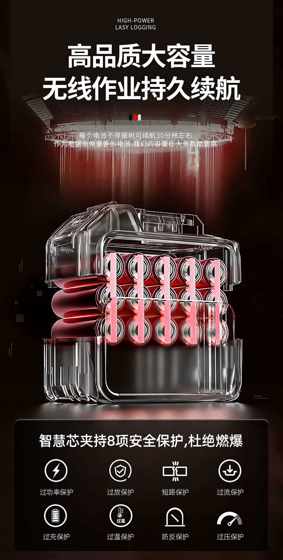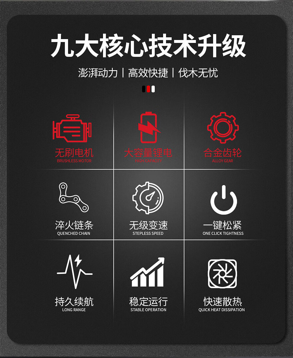 12寸锂电锯无刷充电手持式家用砍树伐木锯户外锯树劈柴电动电链锯