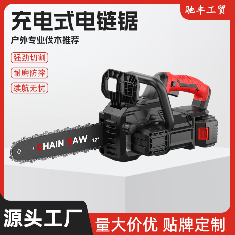 国境を越えた新型12インチ手持ち式ハイパワー理電鋸家庭用充電式チェーンソー屋外電動伐採鋸