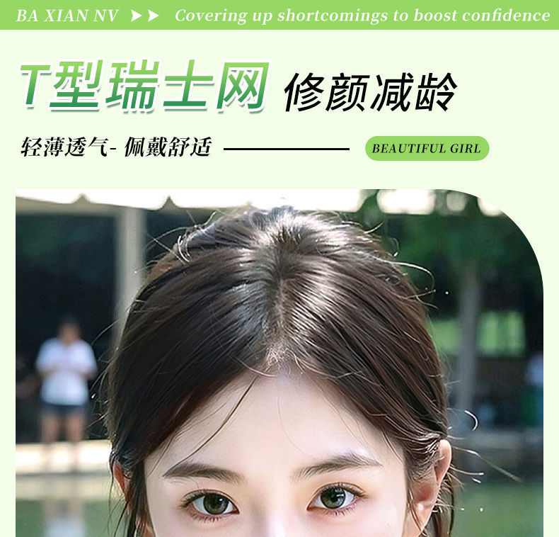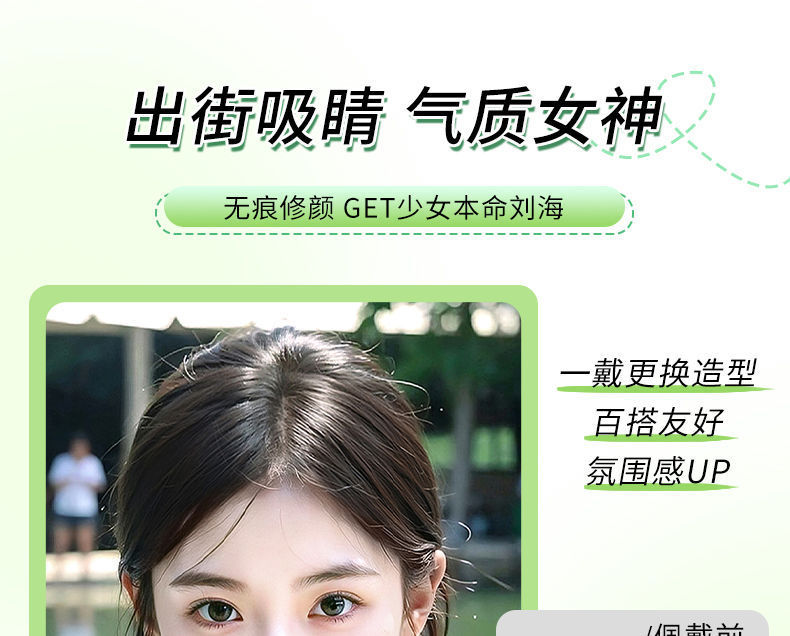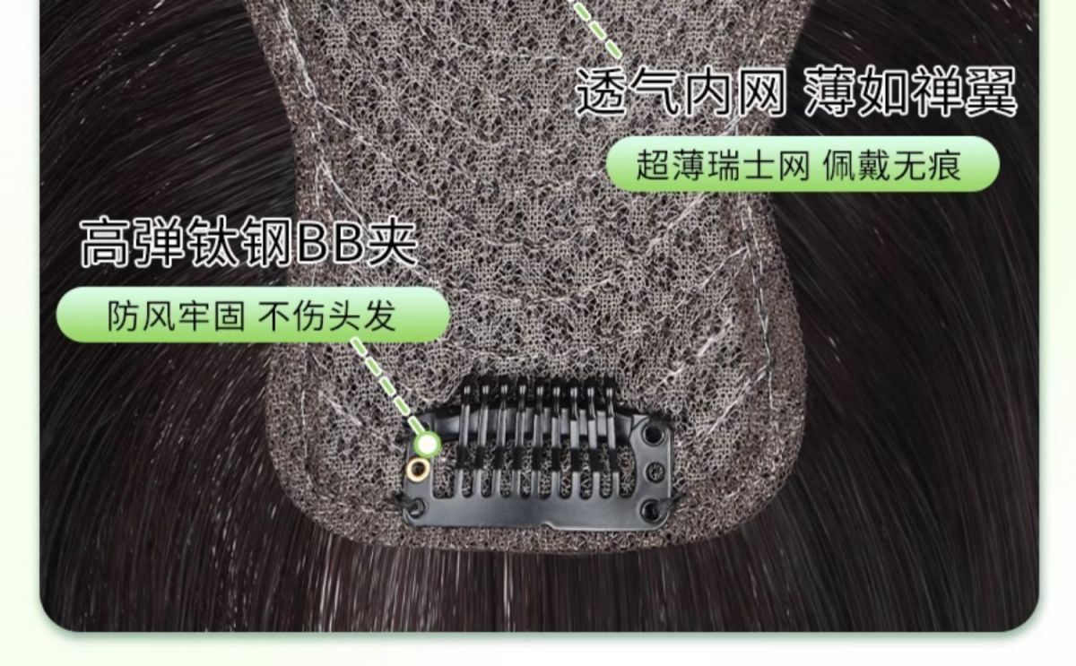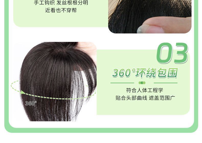 外贸欧美假发片女头顶八字刘海遮白发轻薄隐形蓬松增发刘海补发片