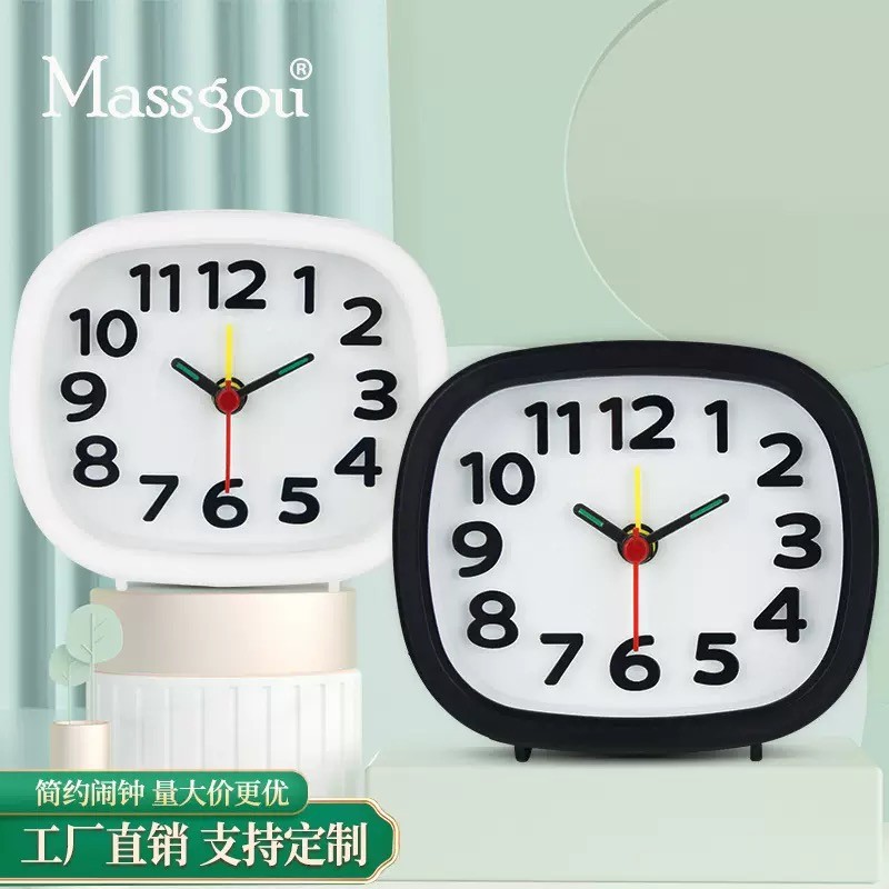 静音目覚まし時計老人時計の大きな字の夜の明かりのベッドの上に子供のデスクトップの寝室の夜光台の時計を並べます。