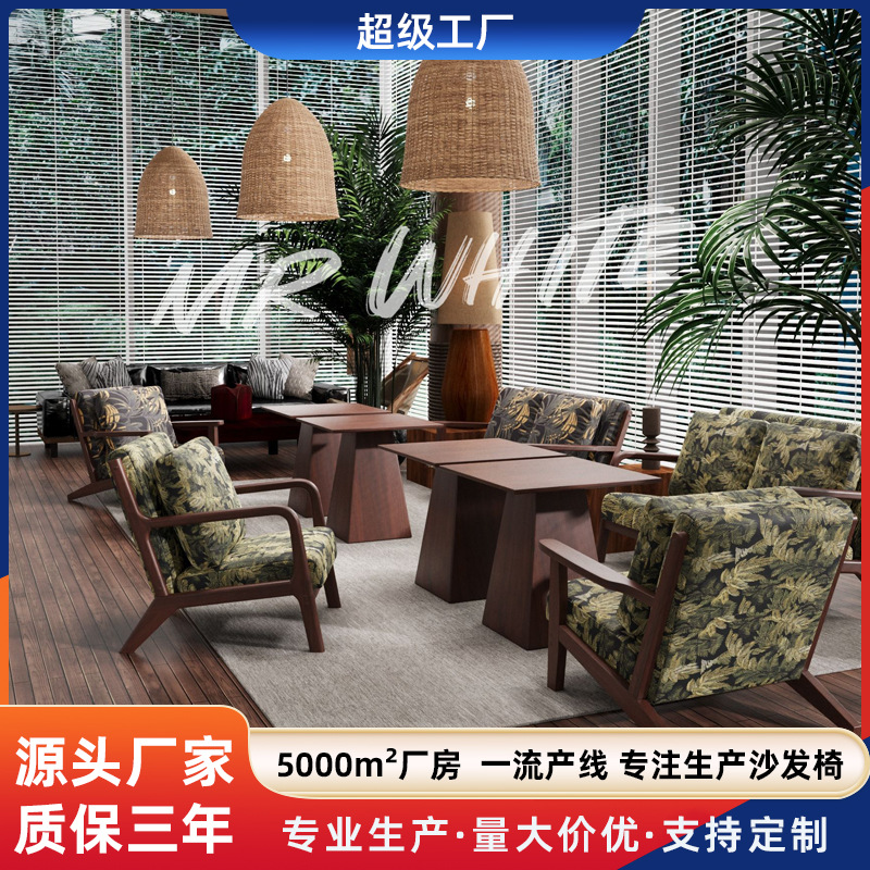 实木沙发桌椅组合简约洽谈奶茶店咖啡店民宿餐厅售楼处休闲卡座