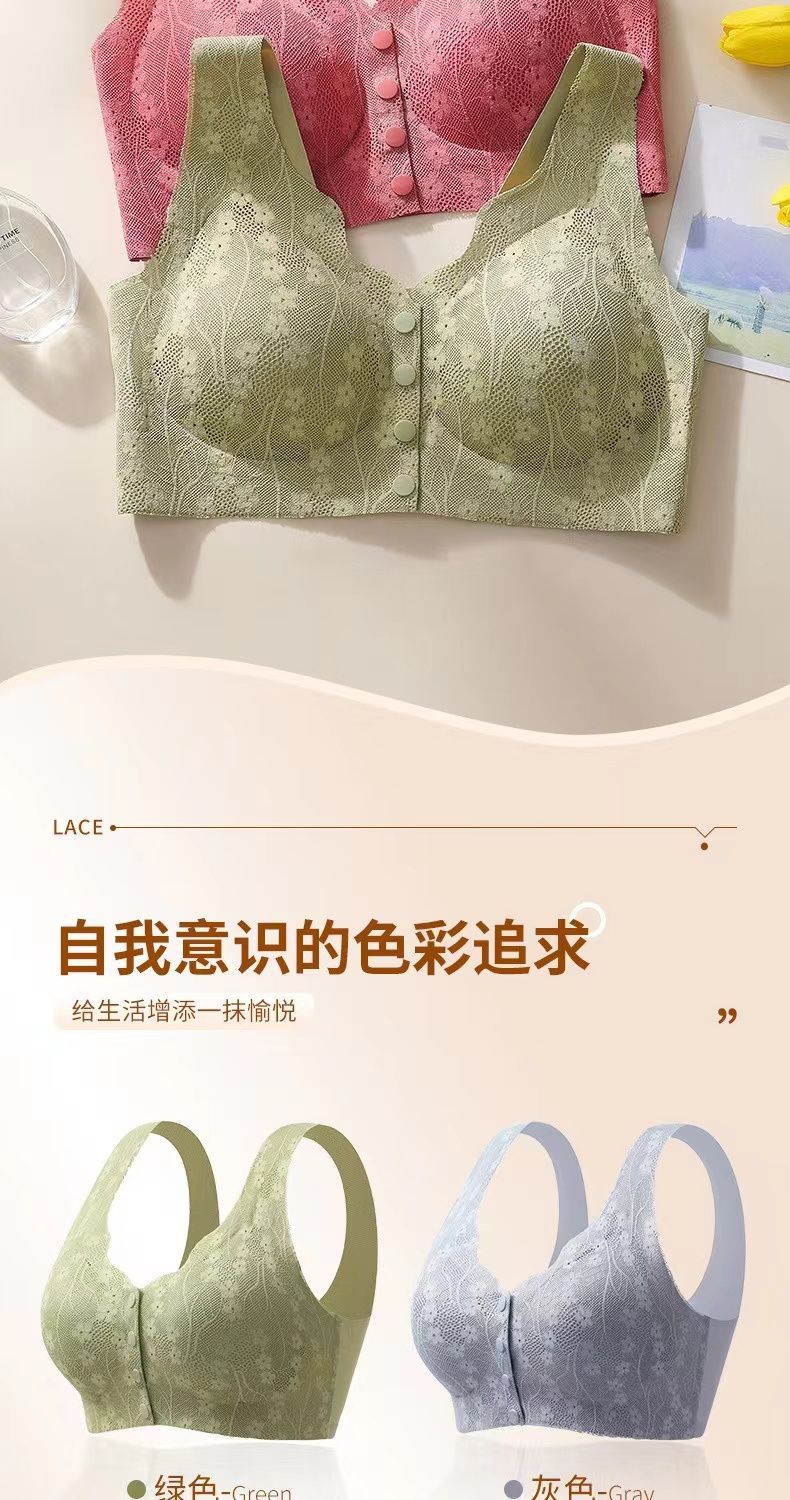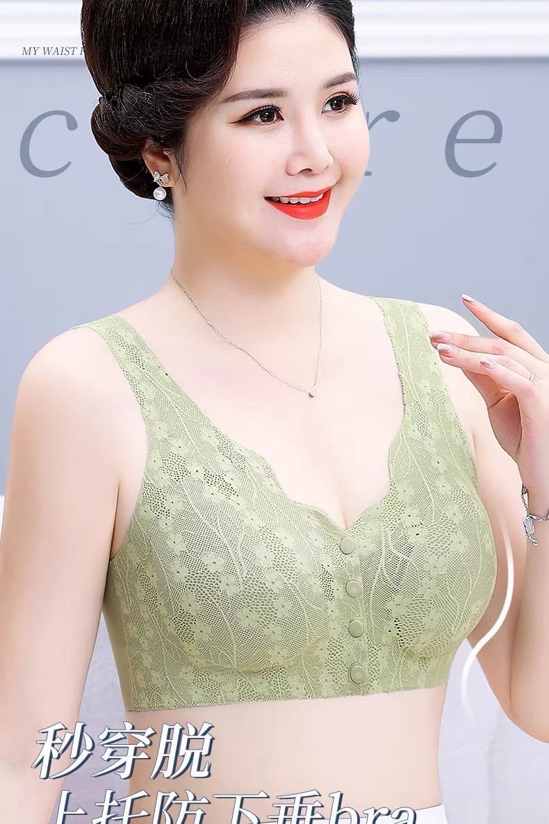 アップグレードブラジャーの中で高齢者の前でボタンをつけます。