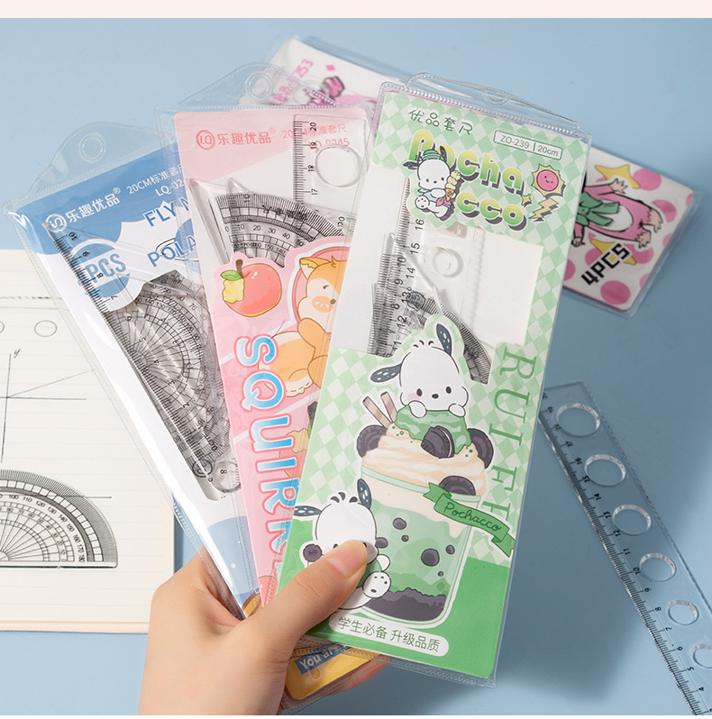 かわいいセットの定規の学生の多機能の三角板の定規の測定器の4つのセットは硬い定規の卸売りを詰めます。